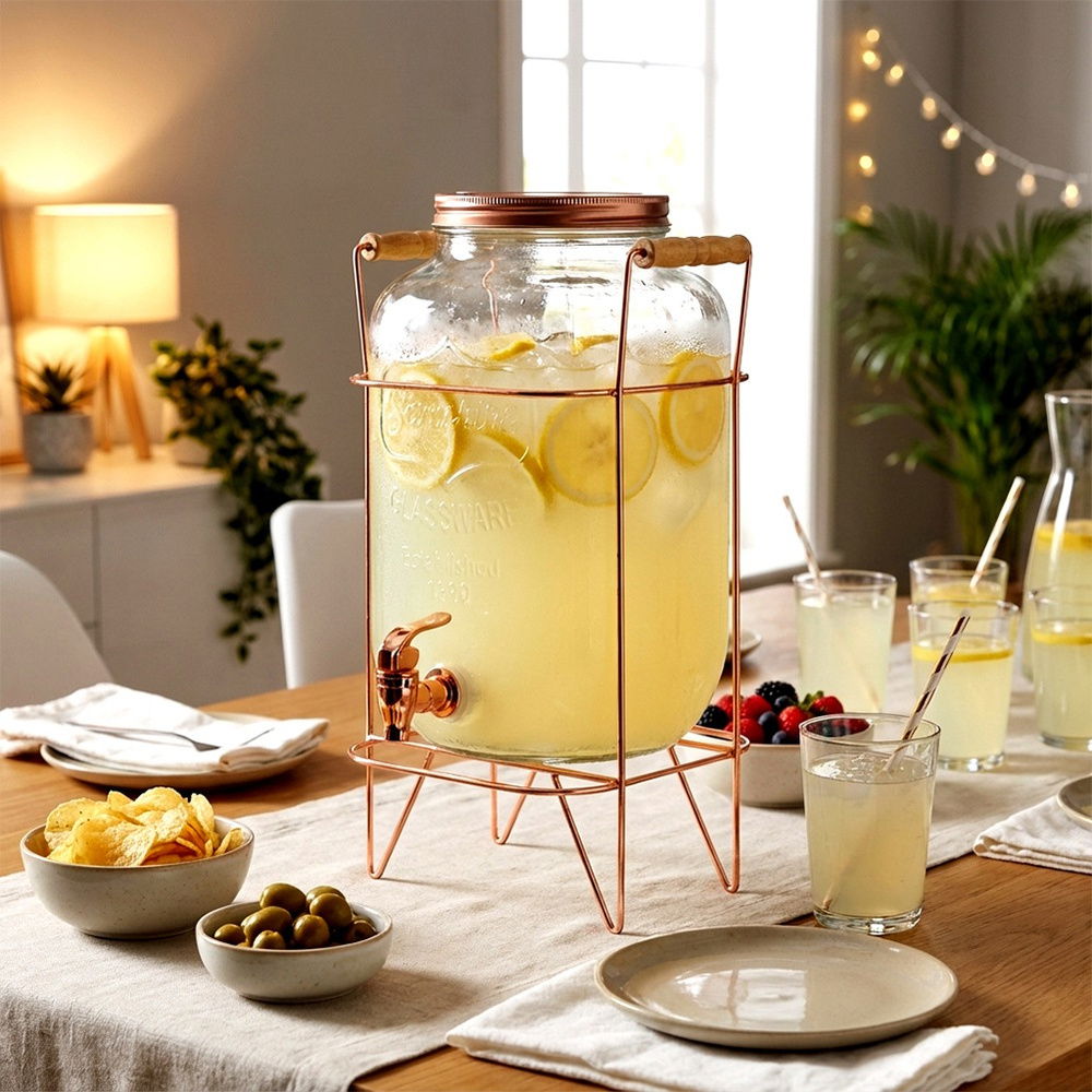 Słój Napoje Duży Słoik Dystrybutor Szklany Kranem Kranikiem Stojakiem 8L
