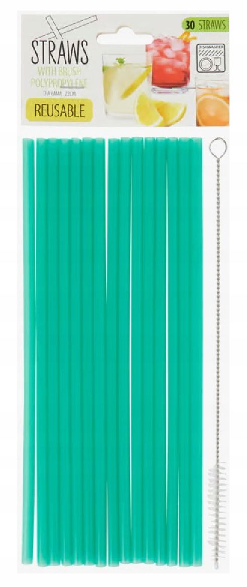 Zestaw 30 plastikowych słomek z czyścikiem. Słomki wielorazowego użytku. Sprawdzą się świetnie jako ozdoba napojów zarówno na przyjęciach dla dzieci, jak i dorosłych. Słomki można wykorzystywać wielokrotnie, można myć je w zmywarce bądź za pomocą czyścika.