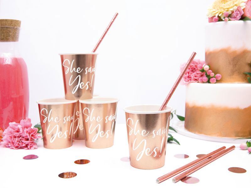 Słomki papierowe to nie rozłączny element każdej imprezy organizowanej dla najbliższych. Wysokość słomki to 19,5 cm, a w opakowaniu znajduję się 10 sztuk w kolorze różowego złota.