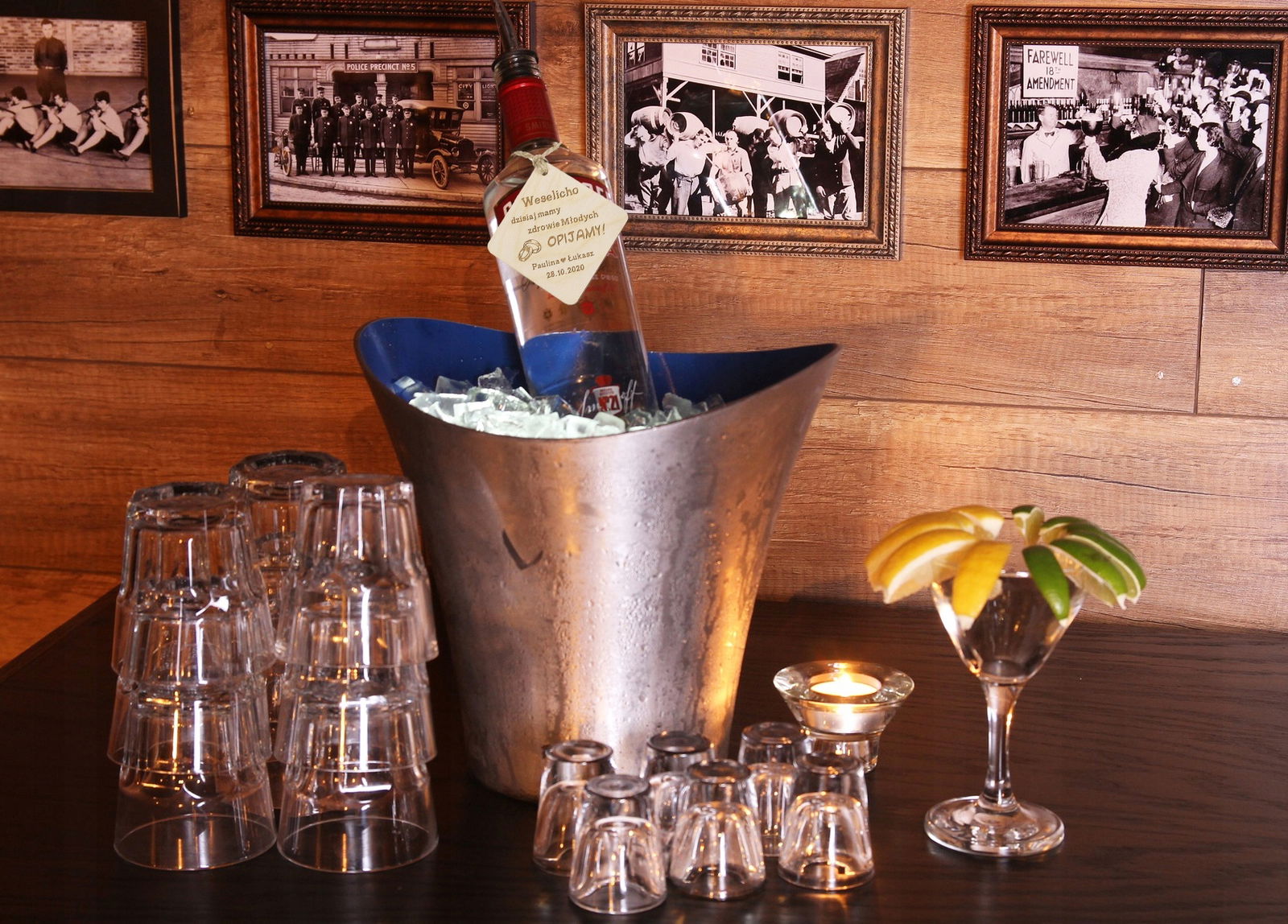 Nietuzinkowe dekoracje na butelki weselne z pewnością wzbogacą weselny wystrój, zainteresują gości, a wesołe teksty zachęcą biesiadników do pierwszych rozmów przy stole.