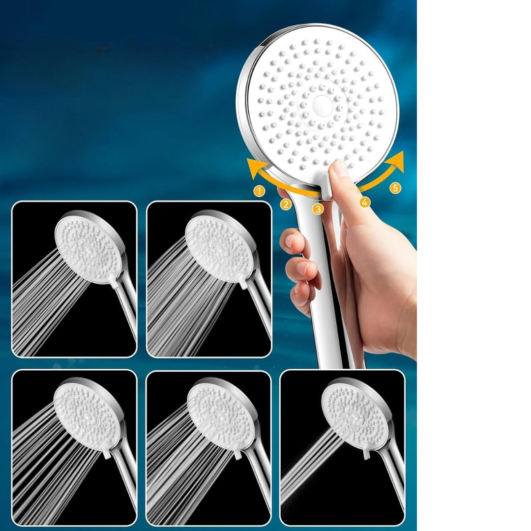- Pięć trybów natrysku: głowica oferuje pięć różnych trybów pracy, dostosowanych do różnych potrzeb użytkownika. Każdy tryb zapewnia odmienne wrażenia podczas kąpieli, poprawiając komfort i przyjemność korzystania z prysznica.