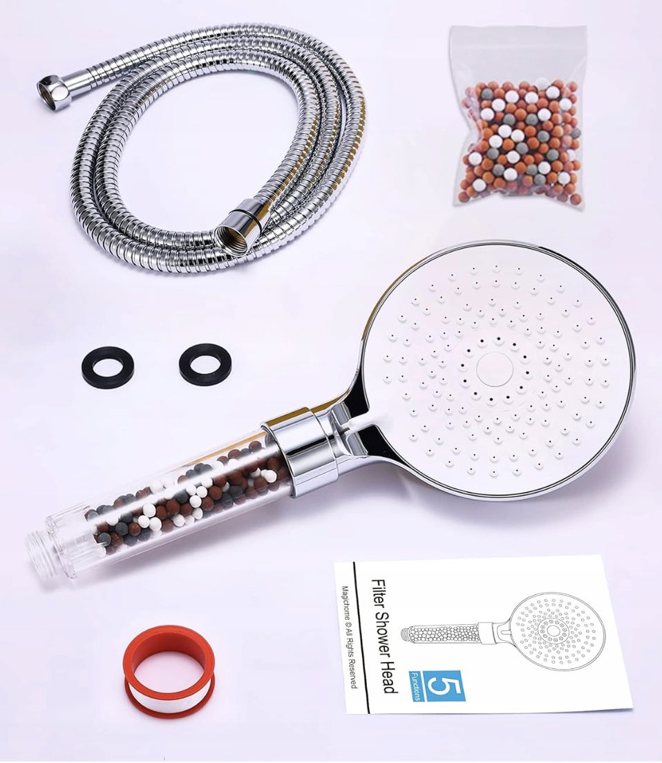 Ta jonowa słuchawka prysznicowa wykorzystuje 3 różne kamienie mineralne, aby usunąć:
