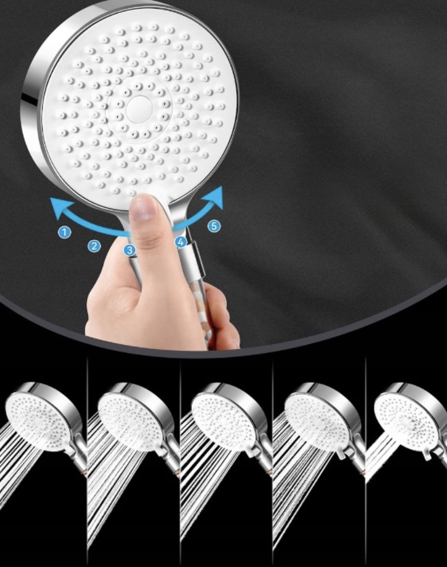 Ta wydajna głowica prysznicowa ma 5 różnych trybów natrysku, aby spełnić różne potrzeby prysznica.