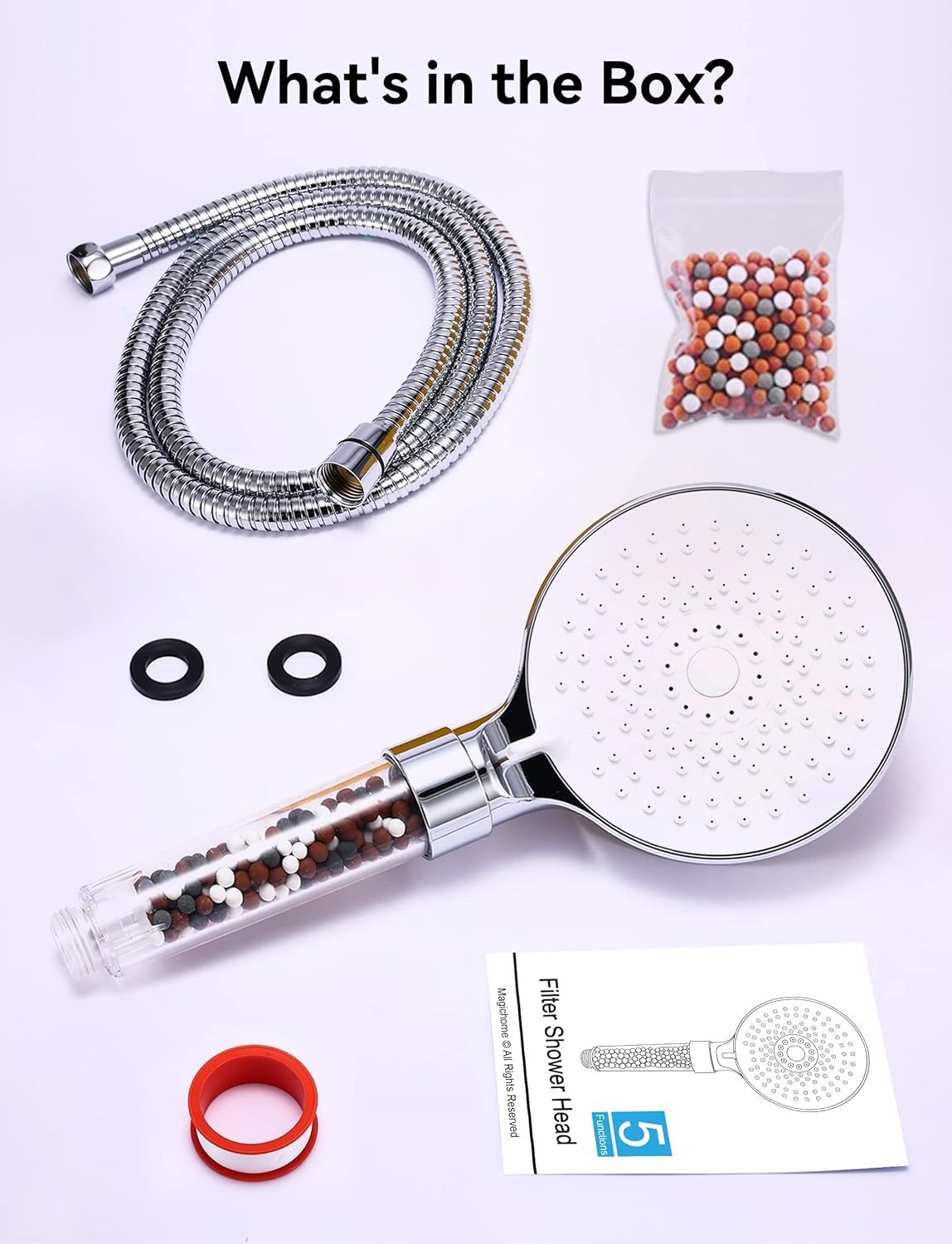 Słuchawka prysznicowa oszczędzająca wodę, 5 rodzajów strumienia, 2m, filtr