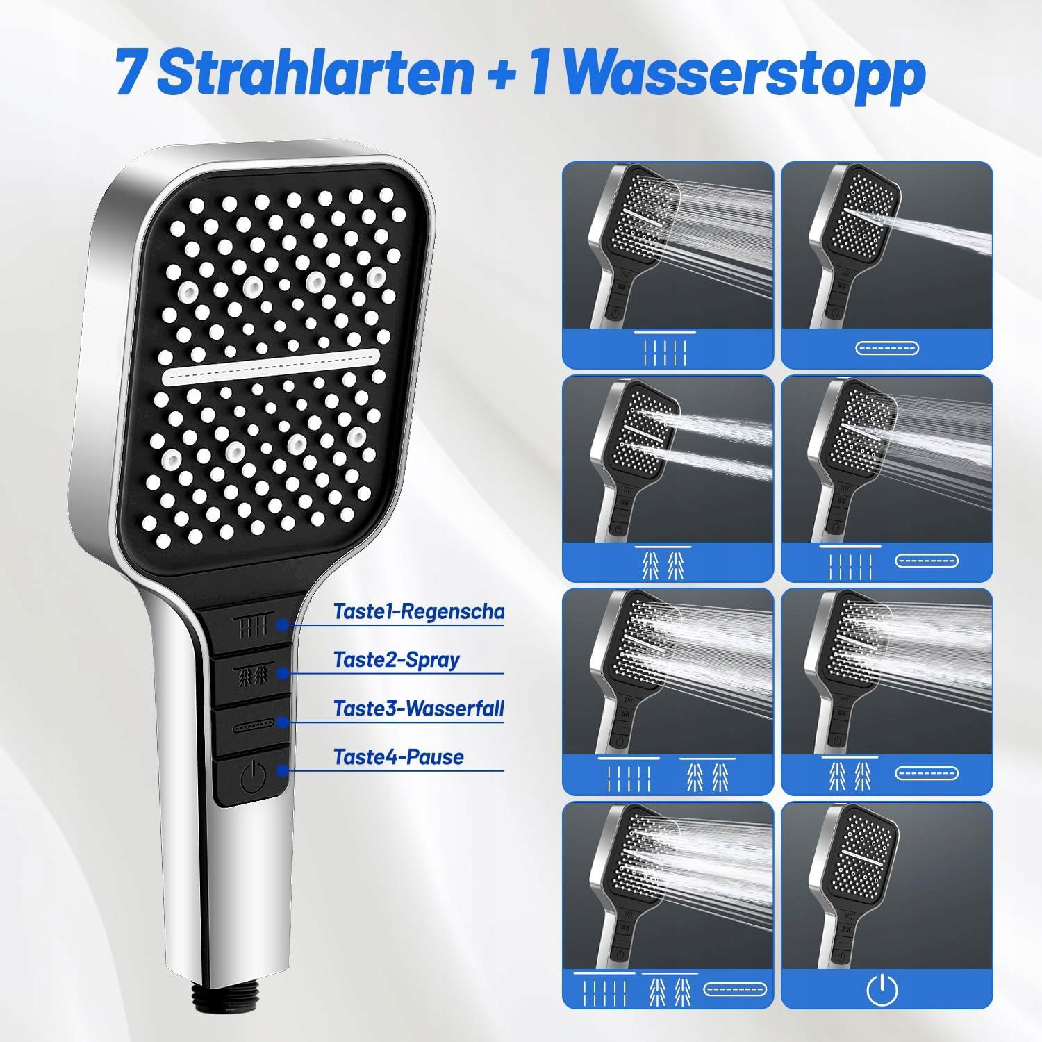 Ciesz się luksusem codziennego prysznica z słuchawką prysznicową VEHHE. Oferuje 7 różnych trybów strumienia, zapewniając idealne doświadczenie dla każdego użytkownika. Deszczownica z funkcją zatrzymywania strumienia i regulacją jedną ręką ułatwia kontrolę nad wodą.