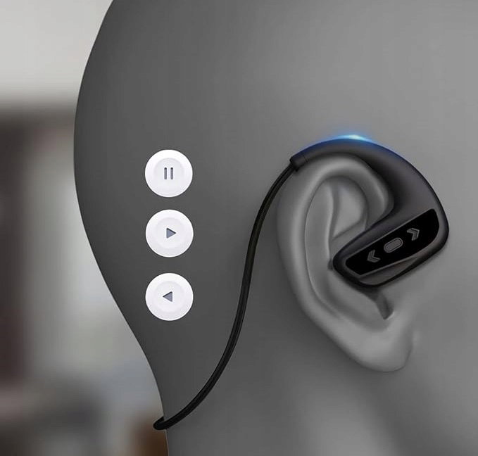 Głośnik Przewodnictwa Kostnego: Słuchawki wykorzystują technologię przewodnictwa kostnego, co oznacza, że dźwięk jest przekazywany bezpośrednio do kości czaszki, omijając tradycyjne słuchawki douszne. Dzięki nano-kompozytowej folii 10 mm, słuchawki oferują szerszy zakres dynamiki oraz lepszą odporność na wodę w porównaniu do tradycyjnych głośników. To idealne rozwiązanie dla osób, które chcą słuchać muzyki podczas pływania lub innych aktywności wodnych.