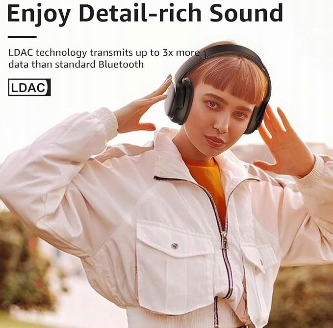 Technologia LDAC: Dzięki bezstratnej technologii kodowania dźwięku LDAC słuchawki z aktywną redukcją szumów Ankbit E700 przesyłają do trzech razy więcej danych niż standardowe kodeki Bluetooth, co pozwala cieszyć się niesamowitymi szczegółami w muzyce.