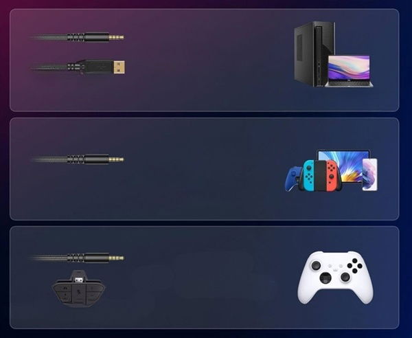 Szeroka kompatybilność – działa z PS4, PS5, Xbox One, Nintendo Switch, PC, laptopami i urządzeniami z wejściem audio 3,5 mm.