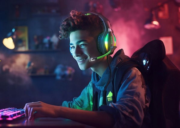 Zestaw słuchawkowy dla graczy Krysenix łączy w sobie smukły design z fajnymi kształtami i żywymi światłami RGB.