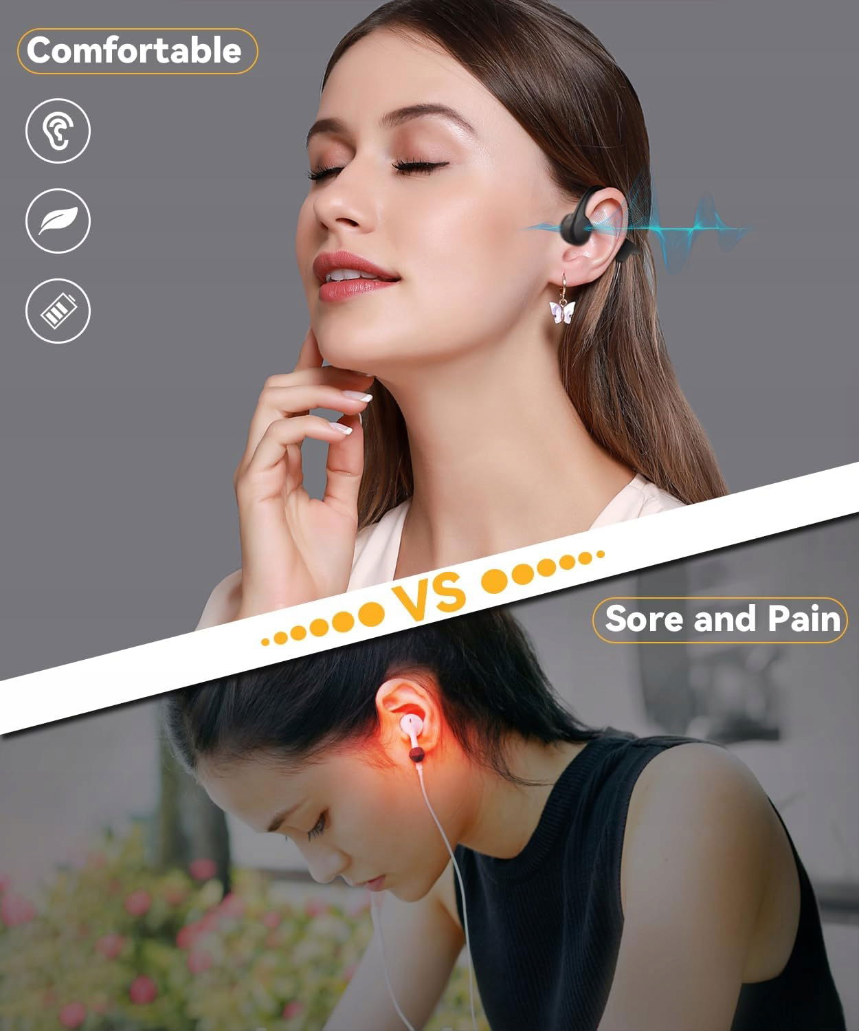✔ Konstrukcja open ear (otwarte ucho) – pełna świadomość otoczenia