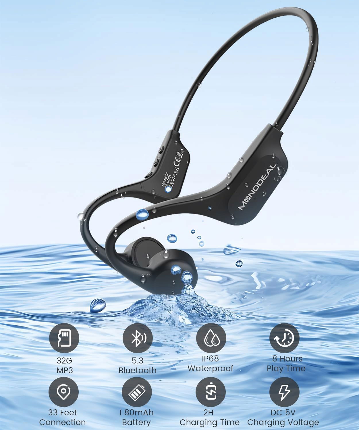 MONODEAL Bone Conduction to nowoczesne słuchawki z przewodnictwem kostnym – idealne do biegania, jazdy na rowerze, treningu i wędrówek.