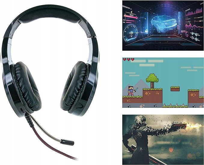 • Gamingowy zestaw słuchawkowy z mikrofonem idealny do e-sportu i gier na PC z praktyczną regulacją głośności i bocznym podświetleniem LED
