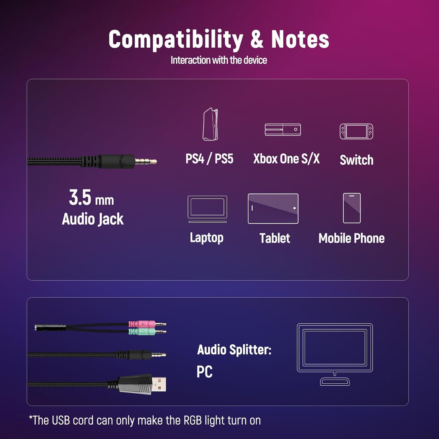 Najbardziej efektowną cechą Ozeino ZW1 jest podświetlenie LED, które dodaje im futurystycznego i gamingowego charakteru. Kolorowe światła (często RGB, choć wymagałoby to potwierdzenia szczegółów) sprawiają, że słuchawki stają się nie tylko narzędziem do słuchania, ale także elementem Twojego stylu i gamingowego setupu. Dźwięk oferowany przez ten model jest czysty i dynamiczny, zapewniając odpowiednie basy i wyraźne detale audio.