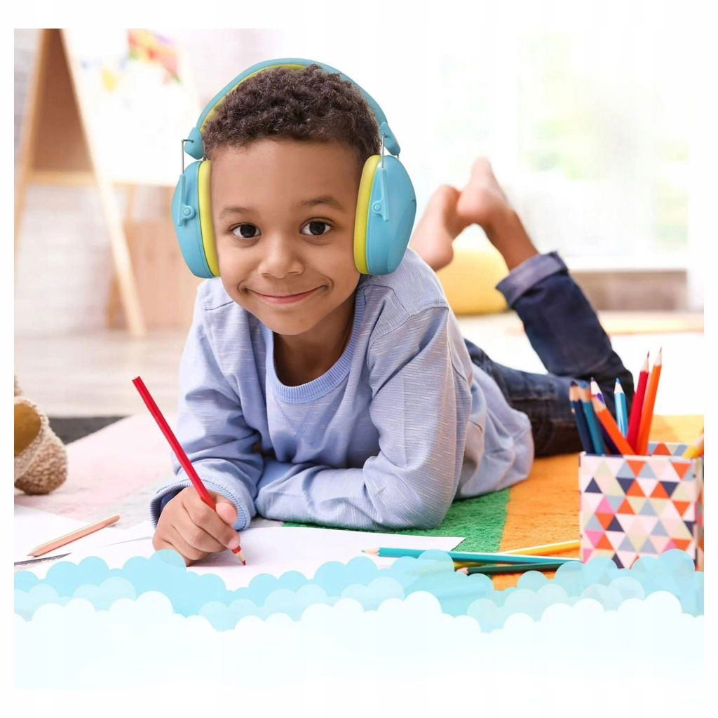 ➡️ PRZYJAZNE KOLORY – połączenie pastelowego niebieskiego i żółtego tworzy atrakcyjną stylistykę, która zachęca dziecko do noszenia słuchawek w różnych sytuacjach.