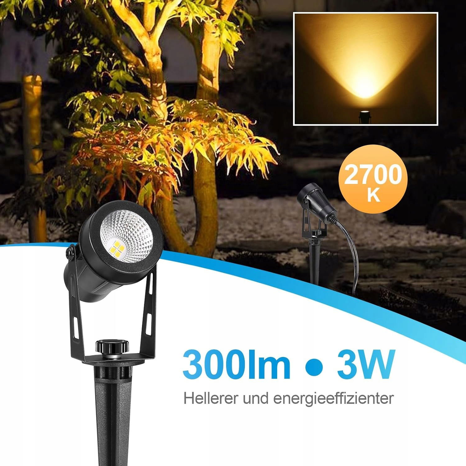 - 4 w 1 & rozszerzalne oświetlenie ogrodowe: Ta kombinacja reflektorów zewnętrznych zawiera 4 lampy ogrodowe (10,5m) i zasilacze (4,5m), całkowita długość wynosi 15m. Podłącz i graj. Możesz również zmniejszyć lub zwiększyć liczbę lamp w zależności od potrzeb.