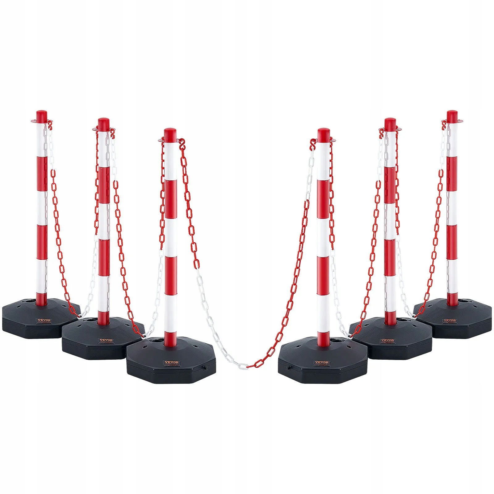Pachołki drogowe ostrzegawcze z łańcuchem – zestaw 6 szt.