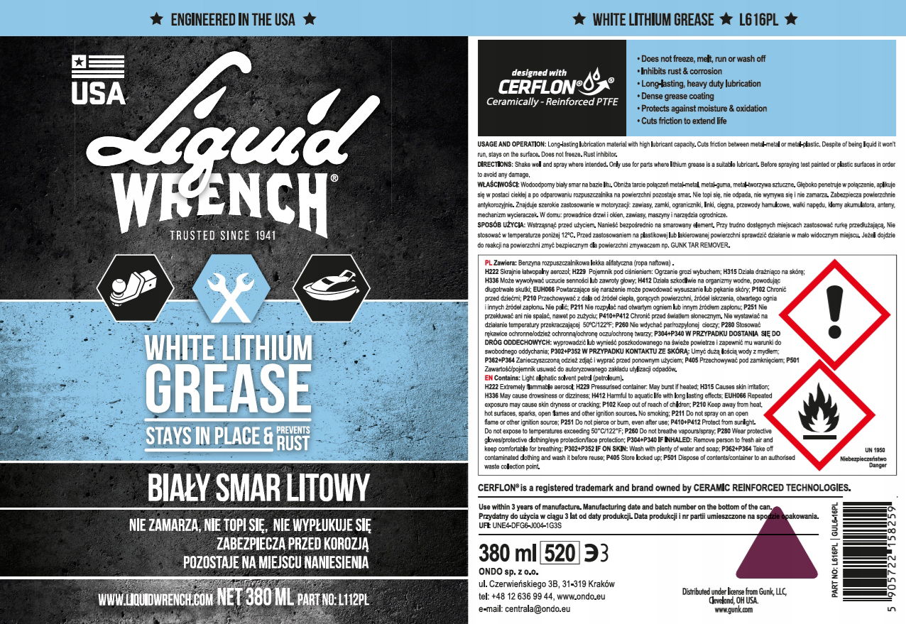 SMAR BIAŁY LITOWY W SPRAYU LIQUID WRENCH DO ZAWIASÓW KŁÓDEK 380 ml