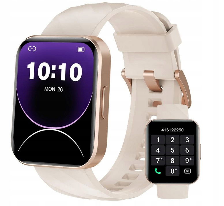 Smartwatch Dakofied z funkcją rozmów tryby sportowe pulsometr damski beżowy