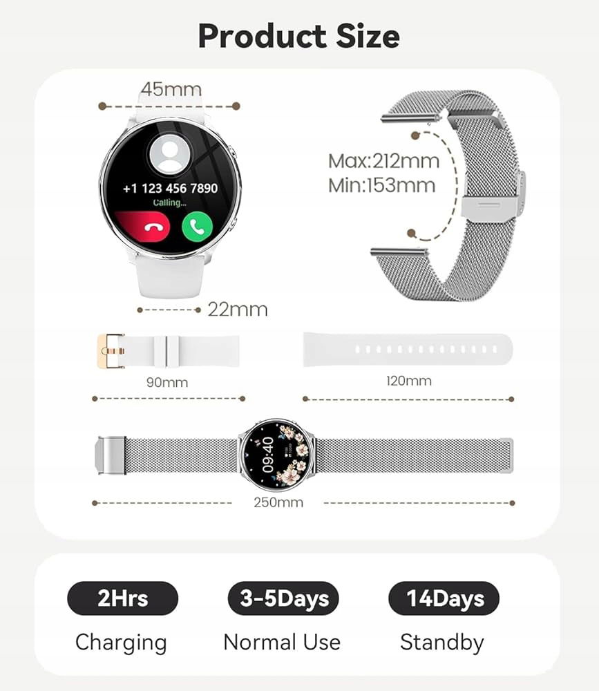 Spersonalizowana tarcza i 2 stylowe paski: Smartwatch ma wyświetlacz Alway-on o rozdzielczości 360 x 360 HD, elastyczną reakcję na dotyk i szczegółową jakość obrazu. Smartwatch z systemem Android ma ponad 100 różnych tarcz zegarków, a także możesz dostosować tarcze zegarka za pomocą osobistych zdjęć. W zestawie 2 paski, jedna bransoletka ze stali nierdzewnej w kolorze srebrnym jest ekegancki, a biały silikonowy pasek jest bardziej swobodny. Możesz przełączać się między klasyką a sportem, aby rozpalić swoją pasję do mody.