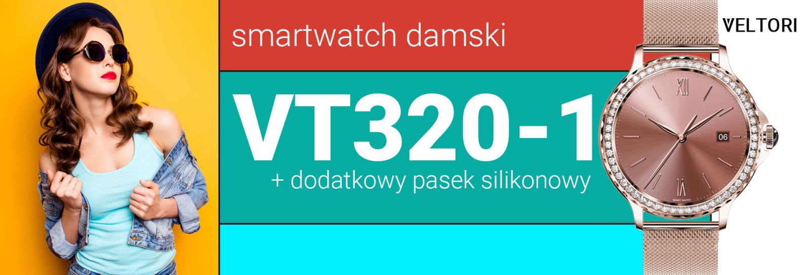 Smartwatch Damski Veltori VT320-1 Złota Bransoleta + Różowy Pasek Silikonowy