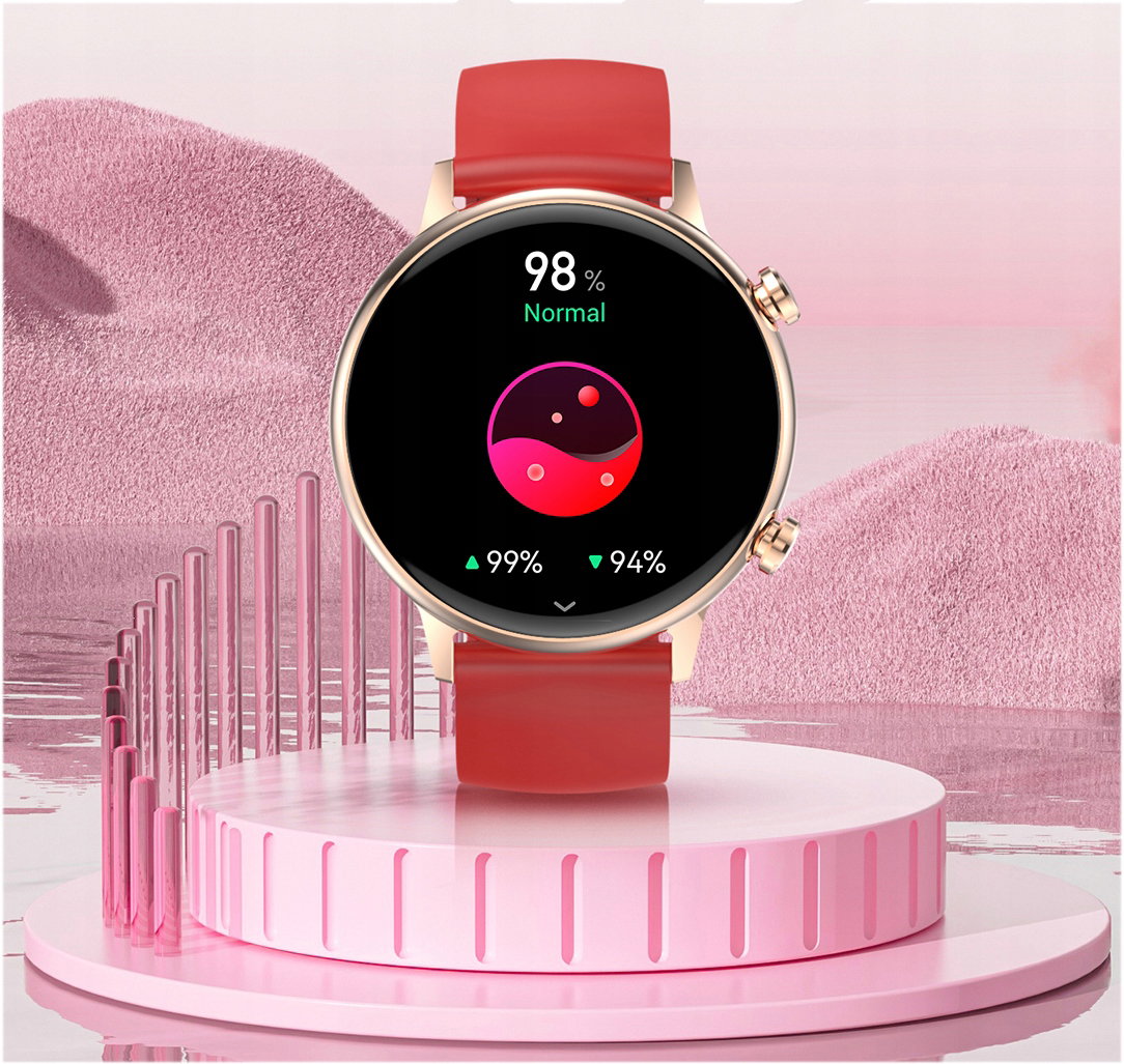 Smartwatch wyposażony jest w wiele funkcji zdrowotnych, dzięki którym możemy monitorować nasze zdrowie. W zegarku znajdą Państwo możliwość zrobienia pomiaru: