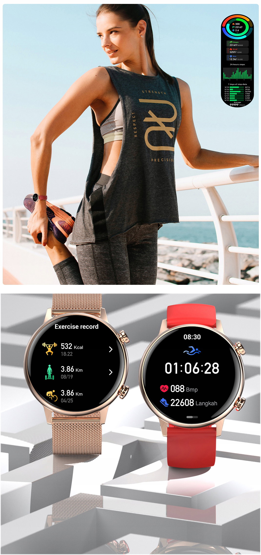 Ekran AMOLED o przekątnej 1,1" 360x360 pikseli - w pełni dotykowy i czuły, zapewniający głęboką wręcz idealną czerń, oraz niezwykle żywe i intensywne kolory. Amoled gwarantuje perfekcyjny kąt widzenia, co umożliwia wygodne odczytywanie informacji z zegarka nawet w ruchu czy w nietypowych pozycjach podczas ćwiczeń. Wyświetlacz AMOLED, który nie tylko zapewnia oszałamiający wizualny efekt, ale również zużywa mniej energii, co przekłada się na dłuższy czas pracy. Dzięki technologii AMOLED, ten inteligentny zegarek oferuje szeroki kąt widzenia, umożliwiając komfortowe korzystanie z wszystkich funkcji z dowolnego miejsca. Bez względu na to, czy patrzysz na niego pod kątem czy prosto, zawsze będziesz cieszyć się niesamowitą jakością obrazu. Niezależnie od tego, czy wyświetlasz kolory czy czarny, zegarek doskonale oddaje każdy detal i subtelność. Oferuje on doskonałe odwzorowanie kolorów i czerni, co sprawia, że każda informacja czy obraz są wyraźne i szczegółowe. Ten innowacyjny zegarek z wyświetlaczem AMOLED to połączenie funkcjonalności, estetyki i oszczędności energii. Odkryj nowy wymiar zegarków inteligentnych i ciesz się perfekcyjnymi detalami na pięknym wyświetlaczu AMOLED!