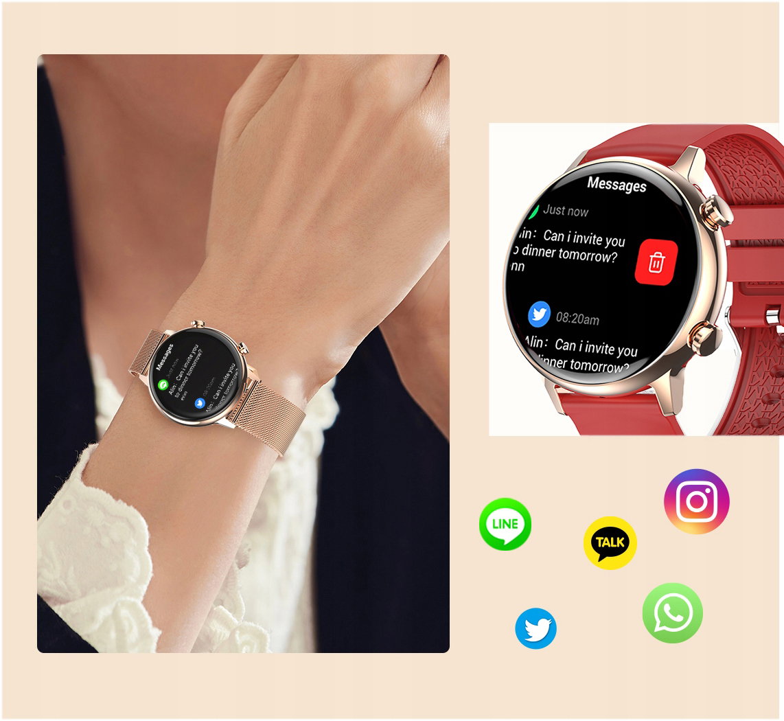 SMARTWATCH DAMSKI ZEGAREK ROZMOWY POWIADOMIENIA SPORT ZDROWIE POLSKIE MENU