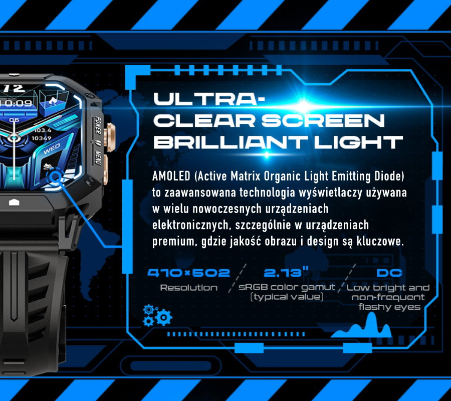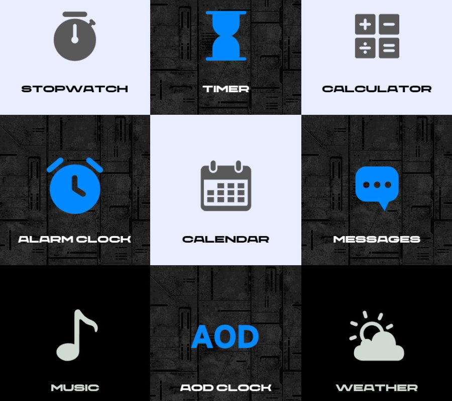- NOWOŚĆ! - ALWAYS ON DISPLAY !!! (Funkcja ta polega na stałym wyświetlaniu na ekranie smartwatcha w trybie czuwania zegara , 2 tryby - zegar analogowy lub cyfrowy , możliwość wł/wył. funkcji )