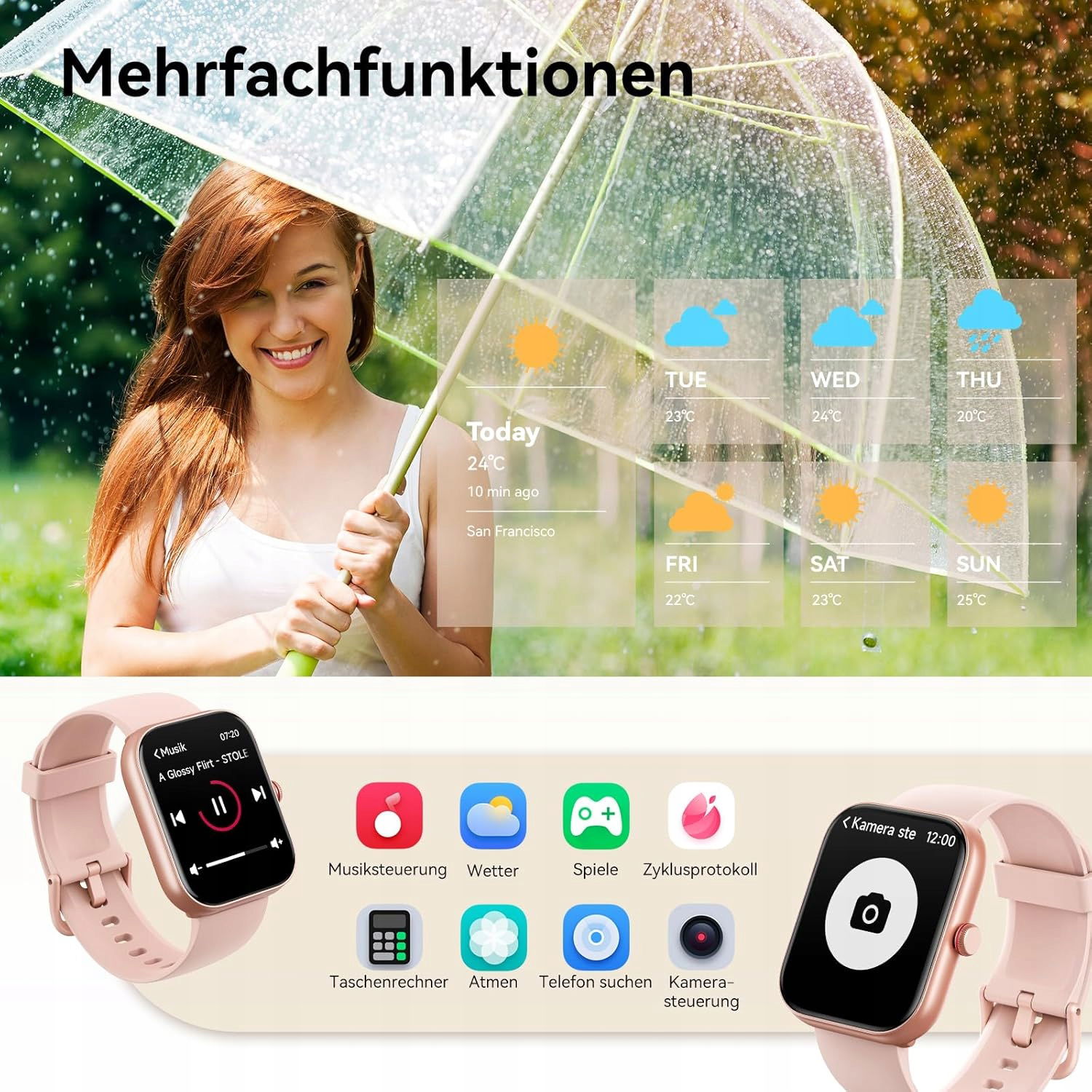 Smartwatch dla kobiet z funkcją Call:2024 Bluetooth chip, wyposażony również w głośniki i mikrofon, połączenia są bardziej stabilne dzięki podłączonemu zegarkowi, a wiadomości są przesyłane szybciej i w czasie rzeczywistym, wystarczy unieść nadgarstek, aby zobaczyć, upewnij się, że nie przegapisz żadnych ważnych wiadomości (obsługuje WhatsApp, Facebook, SMS itp.).