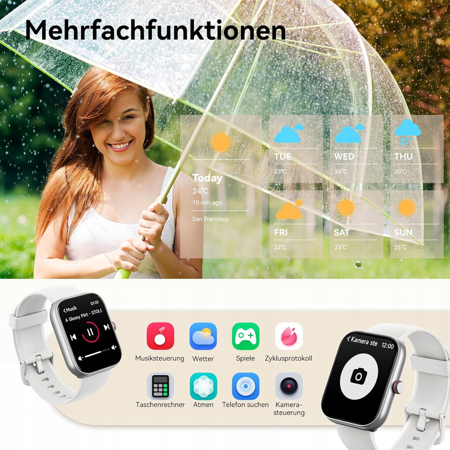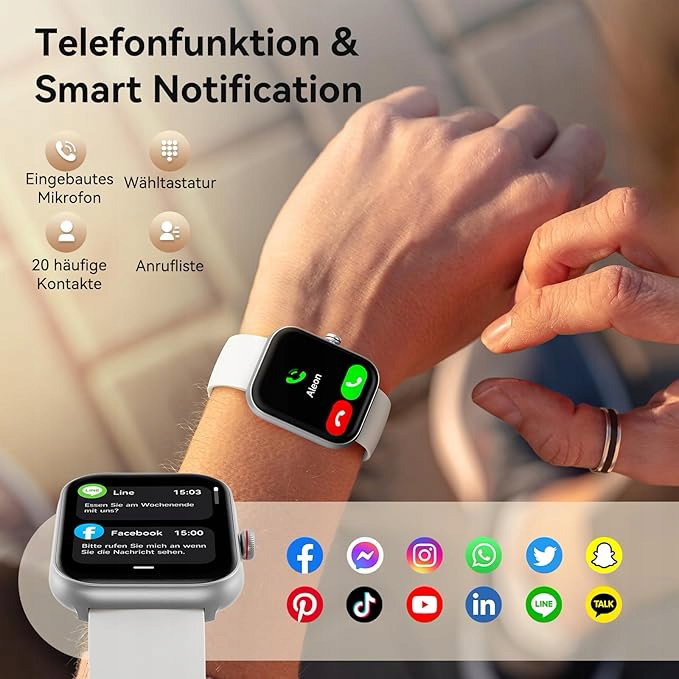 Smartwatch dla kobiet z funkcją Call:2024 Bluetooth chip, wyposażony również w głośniki i mikrofon, połączenia są bardziej stabilne dzięki podłączonemu zegarkowi, a wiadomości są przesyłane szybciej i w czasie rzeczywistym, wystarczy unieść nadgarstek, aby zobaczyć, upewnij się, że nie przegapisz żadnych ważnych wiadomości (obsługuje WhatsApp, Facebook, SMS itp.).