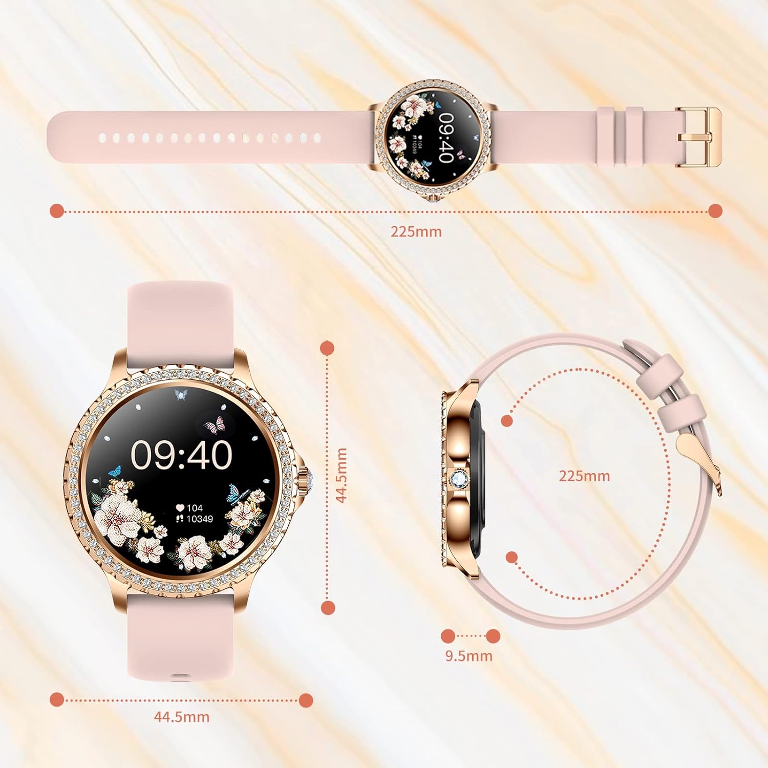 Smartwatch damski Bling Diamond Stras: Ekskluzywny zegarek z diamentową wkładką pokazuje elegancki, błyszczący i szlachetny temperament. W damskim smartwatchu znajduje się 146 błyszczących diamentów z funkcją telefonu, co jest naprawdę połączeniem sportu i mody. Wskazówka: Smartwatch jest kompatybilny z systemem Android 4.4/iOS 6.1 i nowszym.