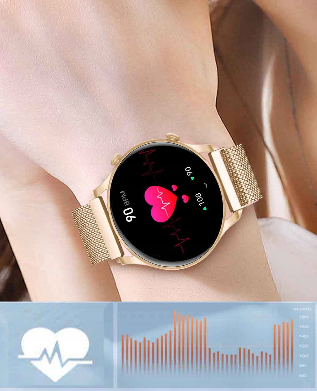 Ten damski zegarek należy do najnowszej generacji smartwatchy, Nowoczesny design sprawi, że zegarek idealnie wkomponuje się zarówno w sportowy jak i outdoorowy look. Jest to smartwatch, który zaskoczy Cię swoją odpornością i przydatnymi funkcjami. Poprawi jakość twojego snu, sprawdzi tętno lub poziom twojego stresu.