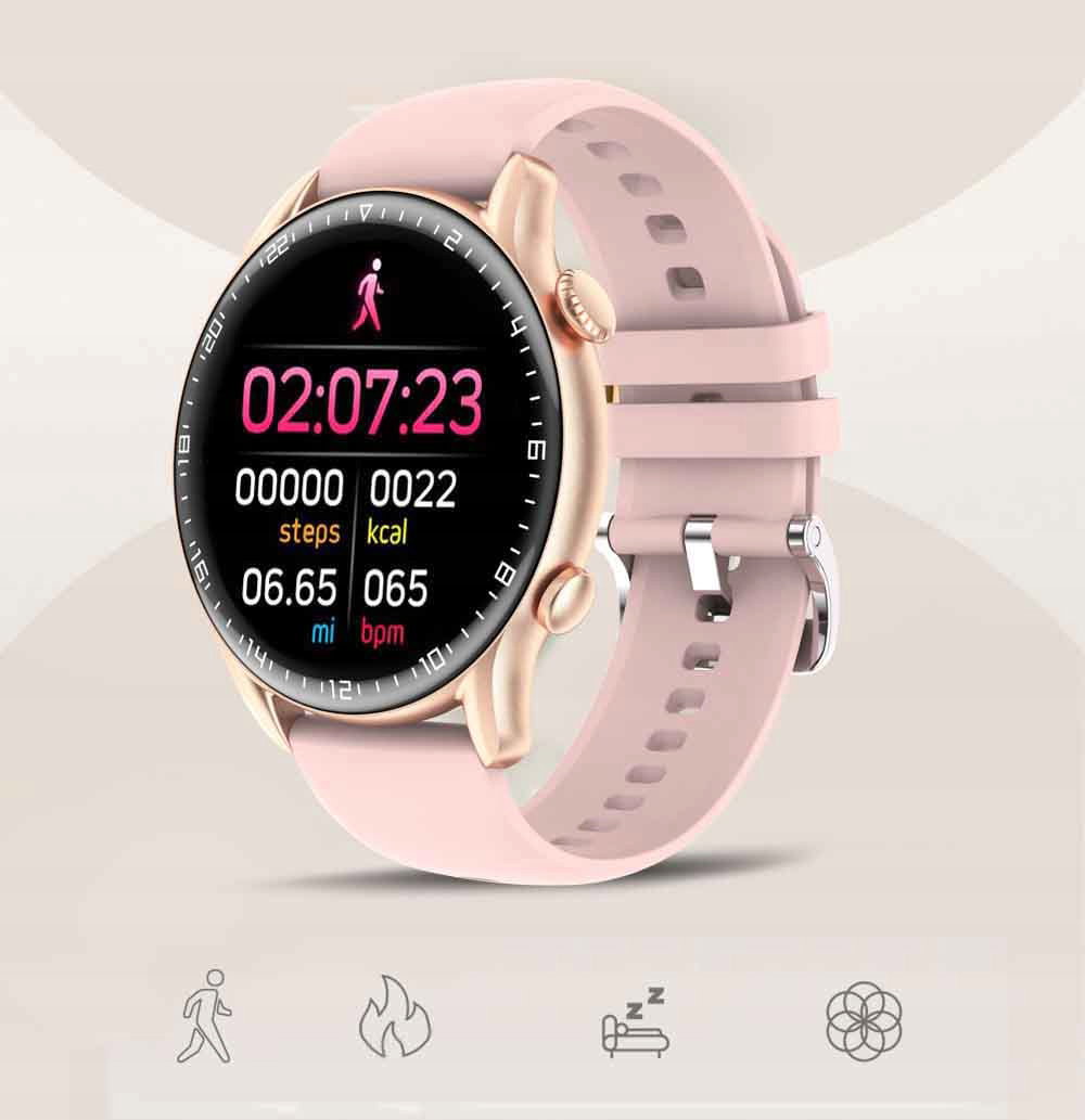 Ten damski zegarek należy do najnowszej generacji smartwatchy, Nowoczesny design sprawi, że zegarek idealnie wkomponuje się zarówno w sportowy jak i outdoorowy look. Jest to smartwatch, który zaskoczy Cię swoją odpornością i przydatnymi funkcjami. Poprawi jakość twojego snu, sprawdzi tętno lub poziom twojego stresu.