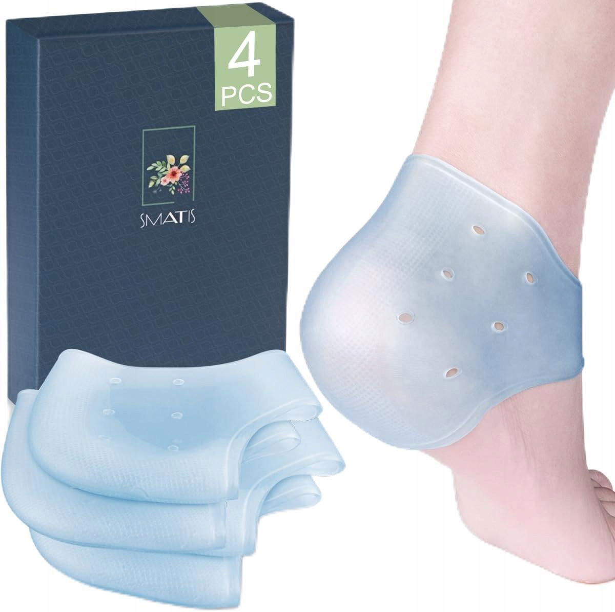 SMATIS Ostrogi piętowe w przypadku zapalenia powięzi podeszwowej, 4 sztuki ochraniaczy na pięcie, na bóle pięty, zapalenie ścięgna Achillesa, ostrogi kostne, obolałe stopy, łagodzi ból