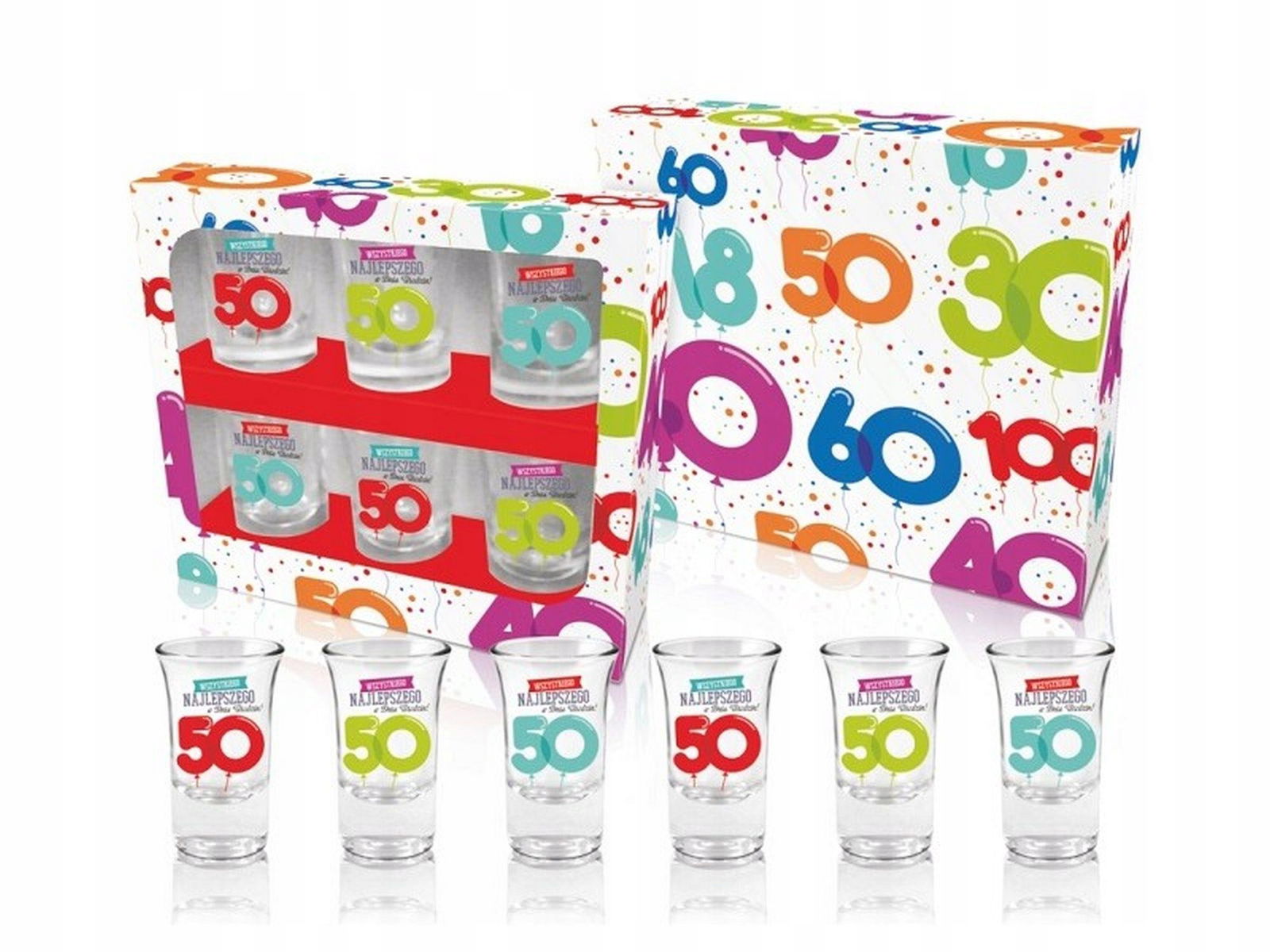 Zestaw zdobionych kieliszków do wódki to doskonały pomysł na prezent. Kieliszki wykonane są ze szkła, a na boku posiadają śliczną kolorową grafikę z napisem Wszystkiego najlepszego oraz liczbą, dzięki czemu świetnie sprawdzą się w roli urodzinowego prezentu. Zapakowane są w kolorowy kartonik, co tylko dodaje uroku całości.