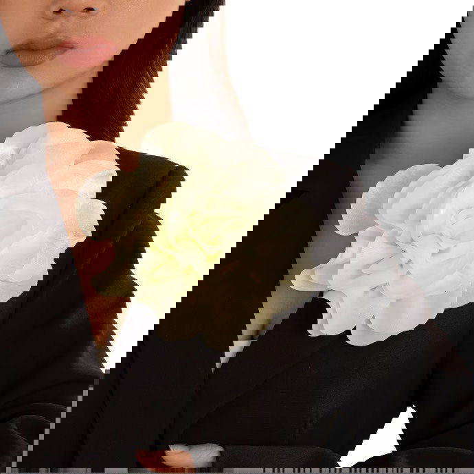 Masywna i efektowna materiałowa śmietankowa broszka w formie rozłożystego kwiatka to stylowy dodatek do garniturów, swetrów i płaszczy. Dzięki takiemu dodatkowi odmienisz swoją stylizację w minutę dodając jej pazura.
