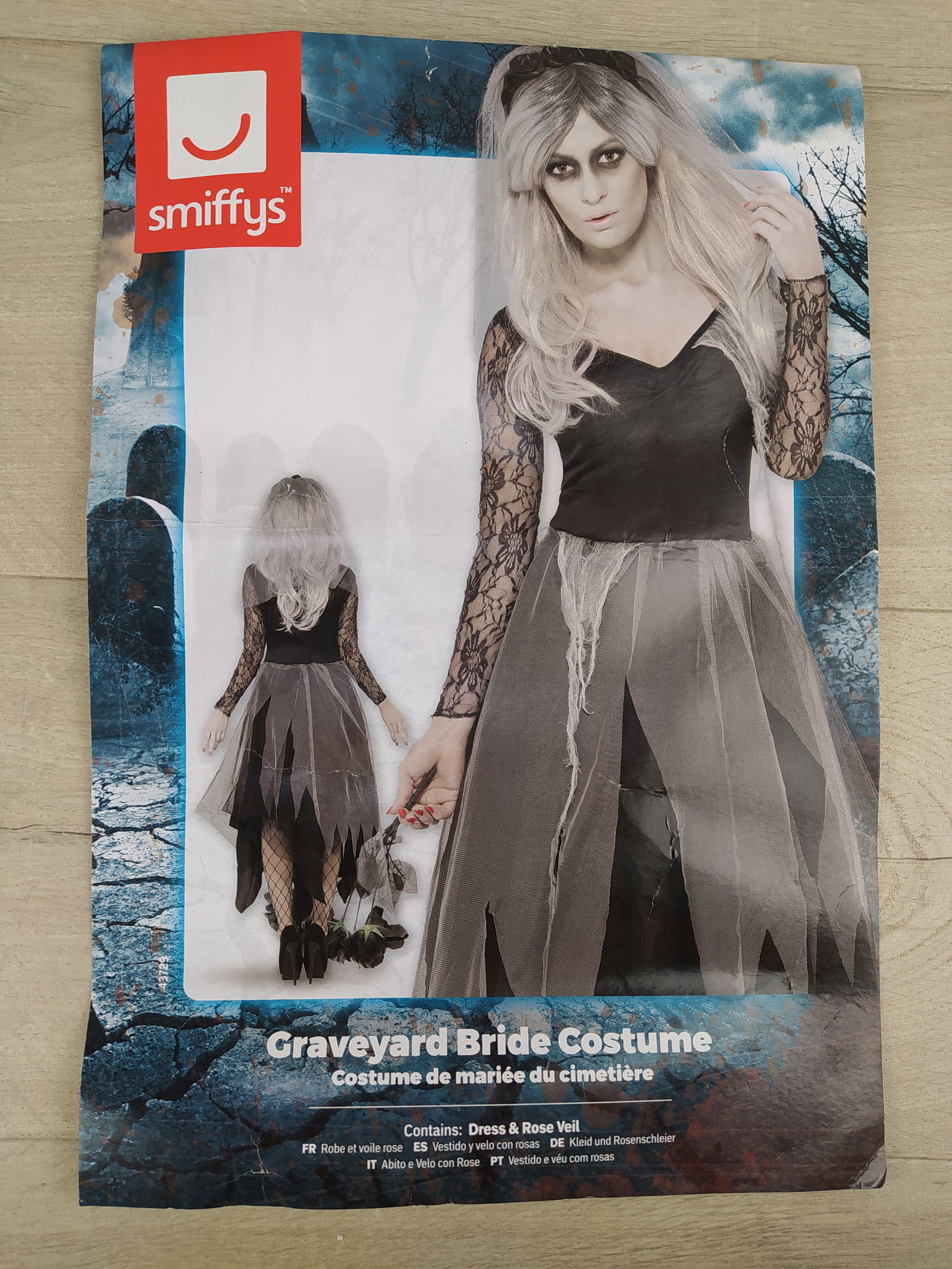 Smiffys Kostium Upiorna Panna Młoda Z Welonem to efektowny strój damski stworzony z myślą o Halloween i imprezach tematycznych. Zestaw obejmuje długą czarną suknię w stylu gotyckim oraz welon z motywem róż, który nadaje całości mrocznego, ale eleganckiego charakteru.