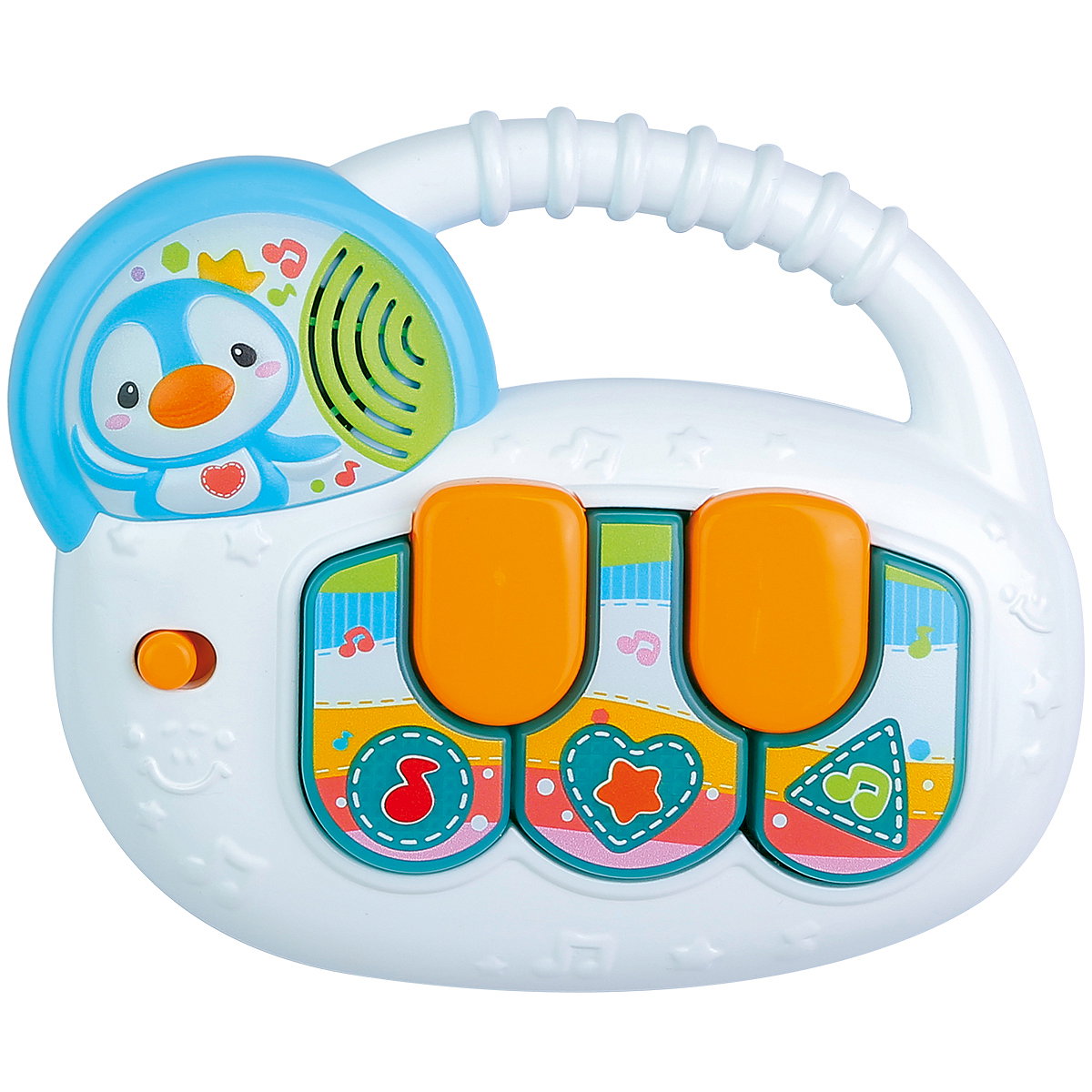 Mini pianko dla maluszka z wygodną rączką to zabawka , którą można zabrać wszędzie. Pianinko posiada wyłącznik, po włączeniu gra wesołe melodyjki i świeci światełkami. Dziecko może również tworzyć własne kompozycje . Przyjemna kolorystyka, motyw pingwinka na głośniku dodatkowo uatrakcyjnia zabawkę. Całość wykonana z bezpiecznych materiałów, z plastiku dobrej jakości, posiada wymagane certyfikaty. SPECYFIKACJA: • 001804 AN01 • EAN 4895038518049 • wym. 15 x 19 x 3 cm • baterie 2 x AAA (w zestawie) • wiek 3m+