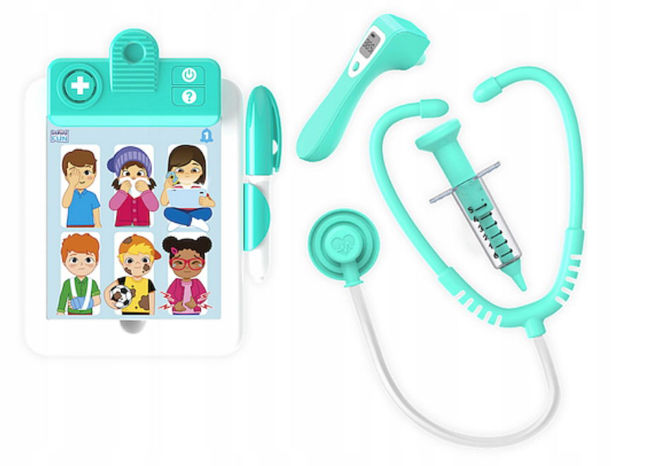 Tablet jest interaktywną zabawką, która przypomina kartę pacjenta. Dziecko może poczuć się jak prawdziwy lekarz, jednocześnie bawiąc się i ucząc.