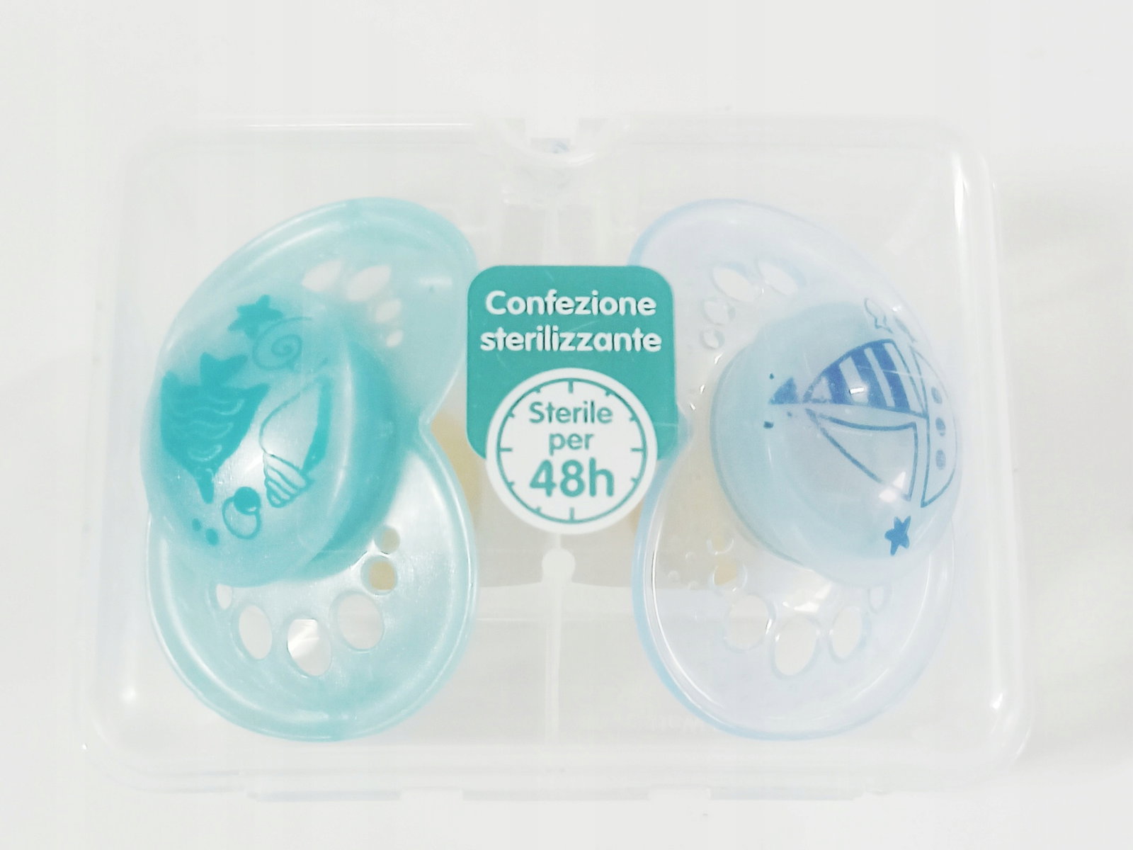 Z wygodnym pudełkiem do sterylizacji i transportu , aby szybko i łatwo wysterylizować smoczek w kuchence mikrofalowej.