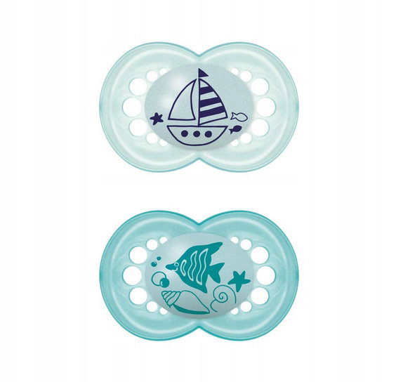 Zakrzywiony kształt dla maksymalnego komfortu. Przyjazny dla skóry dzięki dużym otworom wentylacyjnym i rowkom na wewnętrznej powierzchni, unikalna cecha konstrukcyjna MAM.