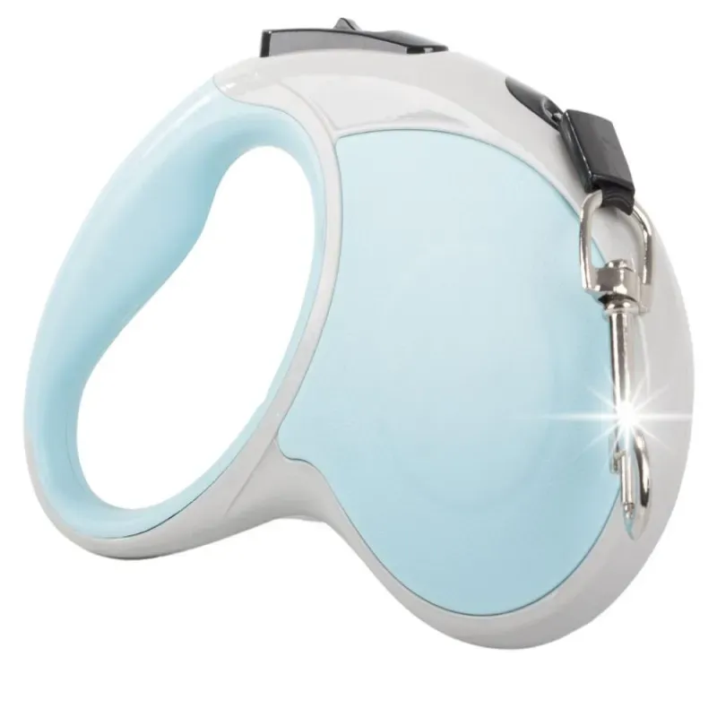 Mocna konstrukcja sprawia, że smycz jest odporna na uszkodzenia. Wytrzymała obudowa chroni mechanizm zwijania, a metalowy karabińczyk zapewnia solidne i pewne mocowanie do obroży lub szelek.