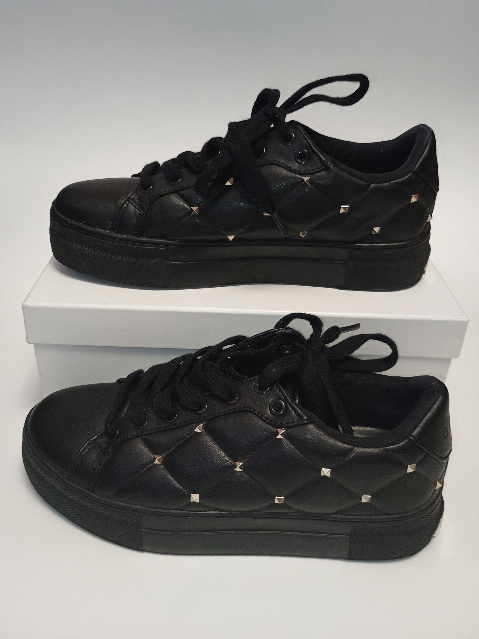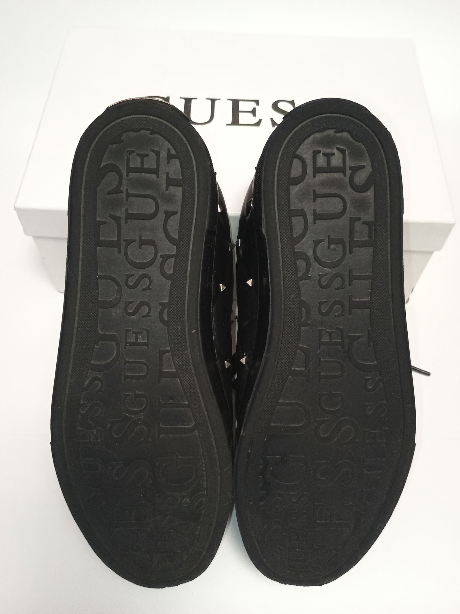 📏 Rozmiar: 38.0 📏 Długość wkładki: 24.0 cm ✅ Marka: Guess ✅ Obuwie 100% oryginalne ✔ ✅ Stan: Używany ✅ Dodatkowe Informacje: Posiadają standardowe ślady użytkowania, mają przetarte zapiętki 📦 Pudełko: Oryginalne