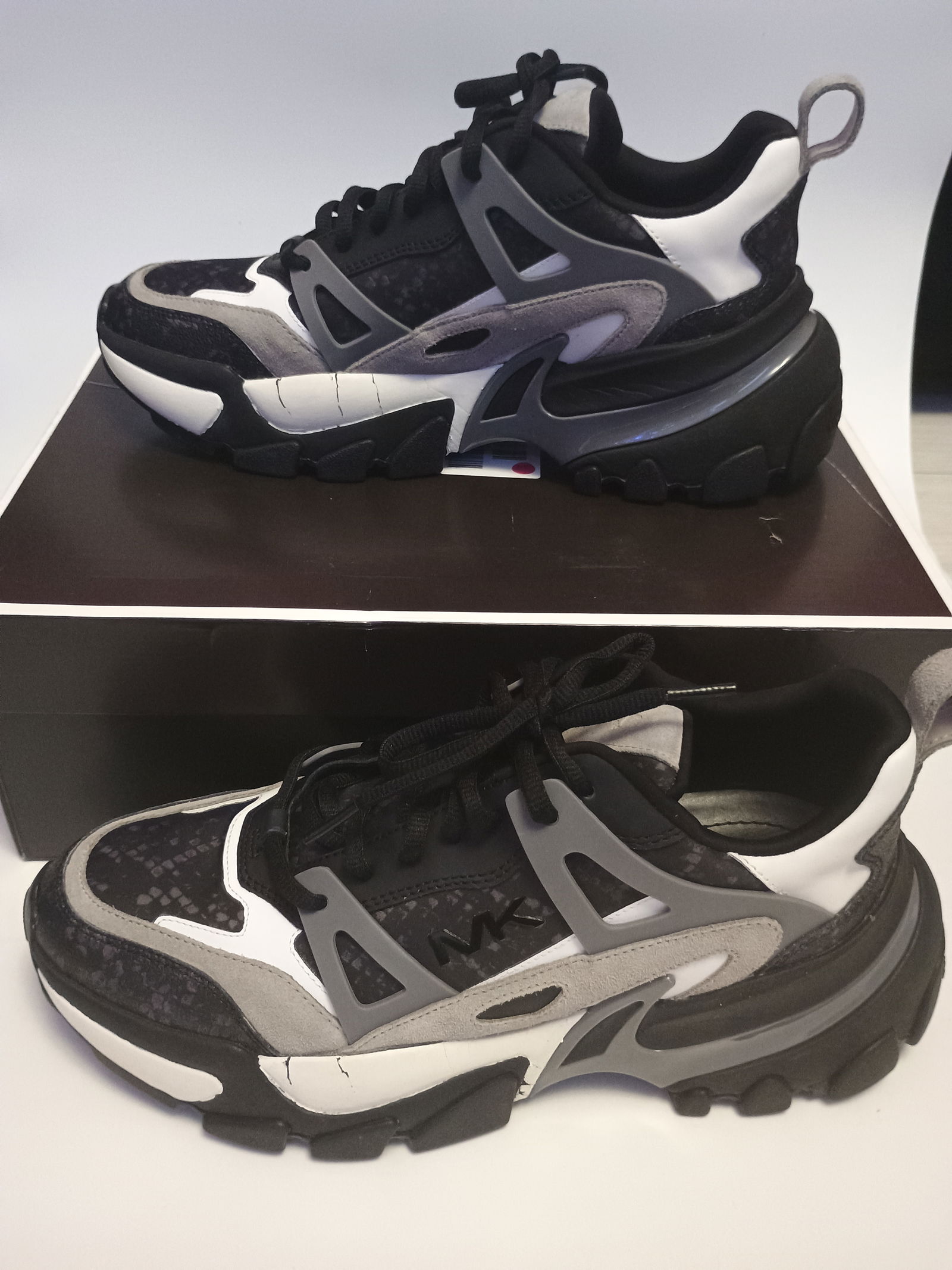 📏 Rozmiar: 43.5 📏 Długość wkładki: 28.0 cm ✅ Marka: Michael Kors ✅ Obuwie 100% oryginalne ✔ ✅ Stan: Nowy z defektem ✅ Dodatkowe Informacje: Posiadają ślady mierzenia, pęknięcia na bokach widoczne na zdjęciach 📦 Pudełko: Oryginalne