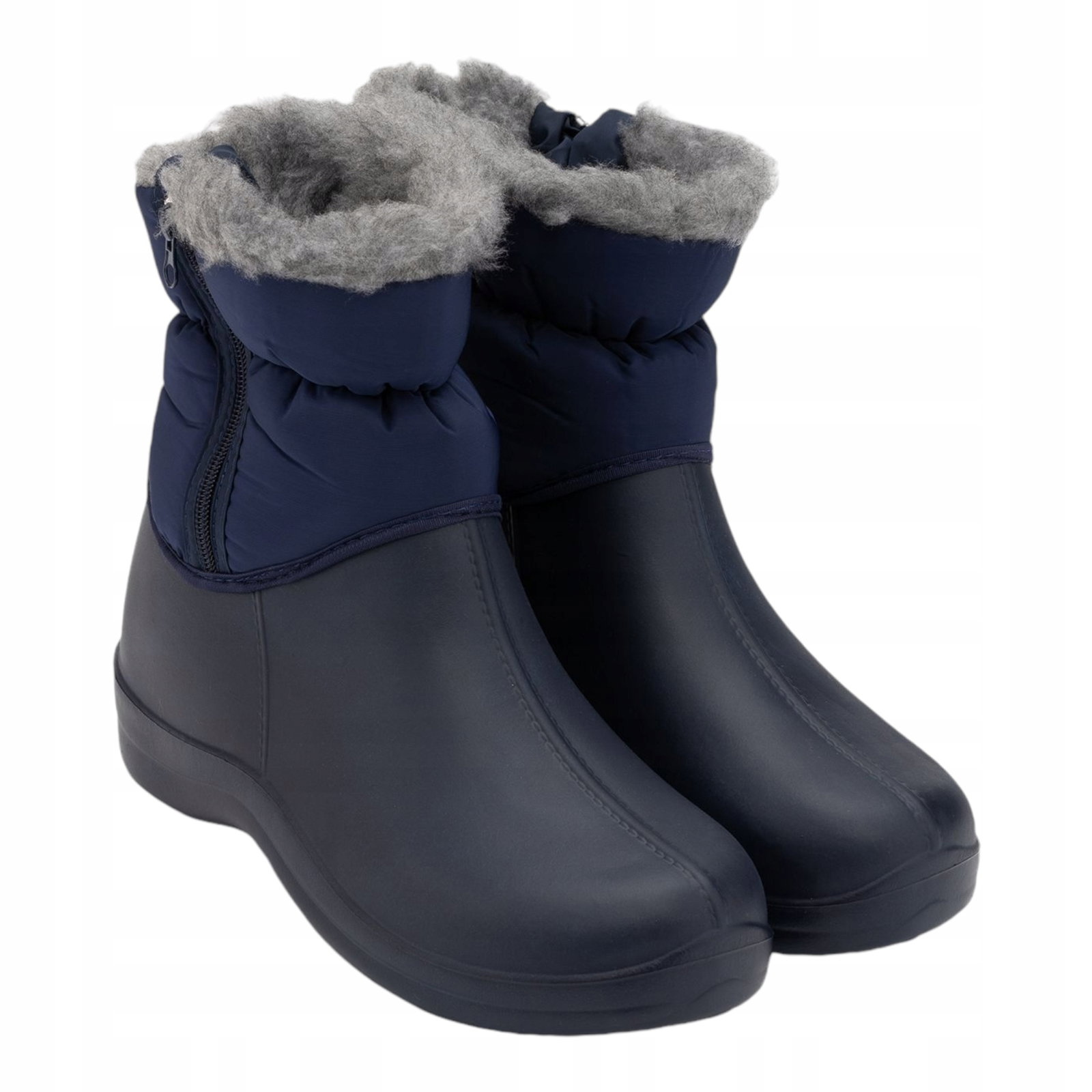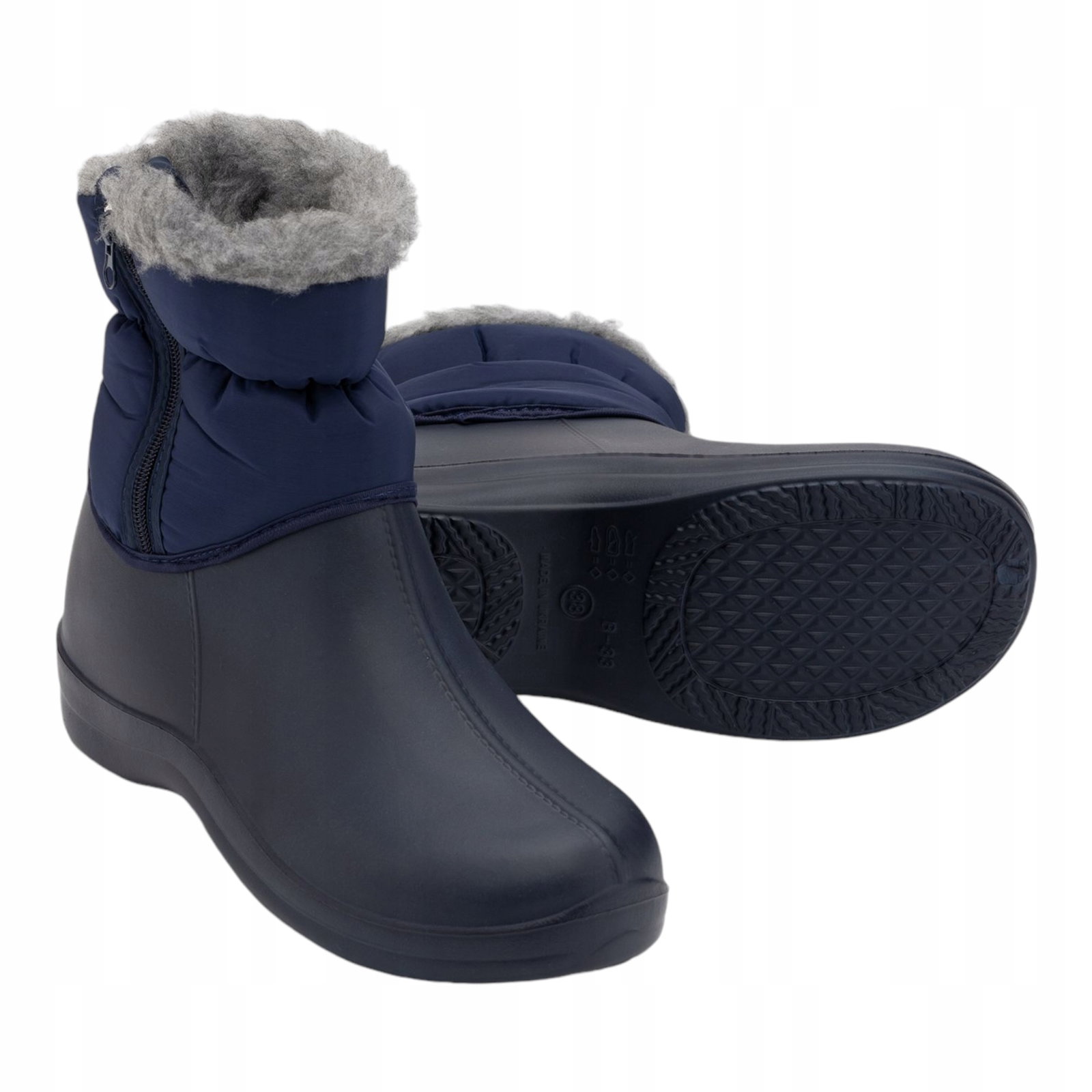 ŚNIEGOWCE DAMSKIE Piankowe Ocieplane Kalosze z Suwakiem Niebieskie r. 37