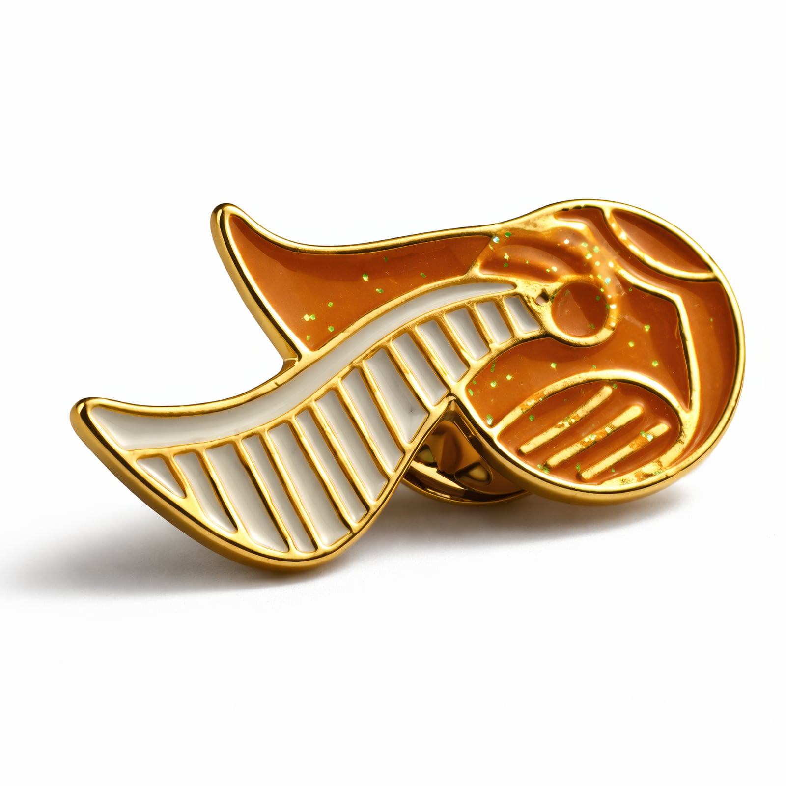 Złap błysk triumfu, który kiedyś przelatywał obok Harry'ego na boisku. Ta 3‑cm metalowa przypinka uchwyca lśniącego Złotego Złapacza w doskonałej miniaturowej formie – migoczącą, skrzydlatą kulę z delikatnymi srebrnymi skrzydłami, gładkim, zaokrąglonym ciałem i wyraźnym emaliowanym wykończeniem, które odzwierciedla kultową piłkę. Solidny zapięcie w kształcie motyla utrzymuje ją bezpiecznie przymocowaną do każdego kołnierza, kurtki lub torby, a kompaktowy rozmiar pozwala jej dumnie leżeć obok innych czarodziejskich skarbów. Idealna dla kolekcjonerów, jako prezent czarodzieja lub akcent cosplay, który wywołuje rozmowy.