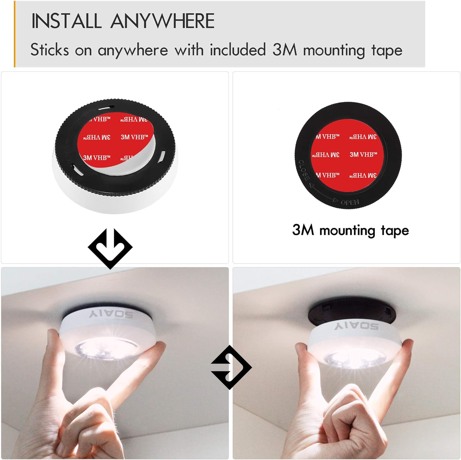 SOAIY Zestaw 4 lamp LED Stick & Push Touch lampka nocna lampki nocne lampy zasilane bateriami lampa podszafkowa samoprzylepna lampa ciśnieniowa lampy kuchenne lampy szafkowe do szafy, witryny, zimna