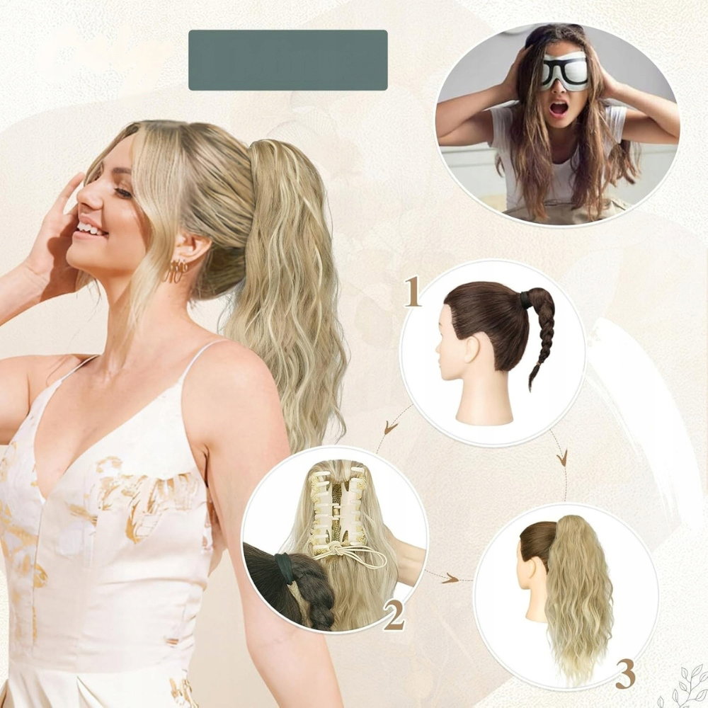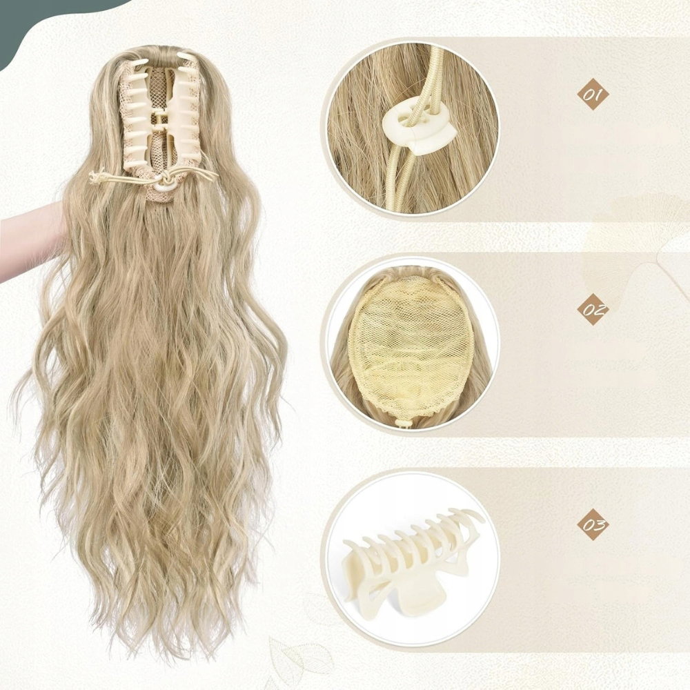 ✨ SOFEIYAN Falowany kucyk doczepiany z klipsem, 45 cm, blond ✨