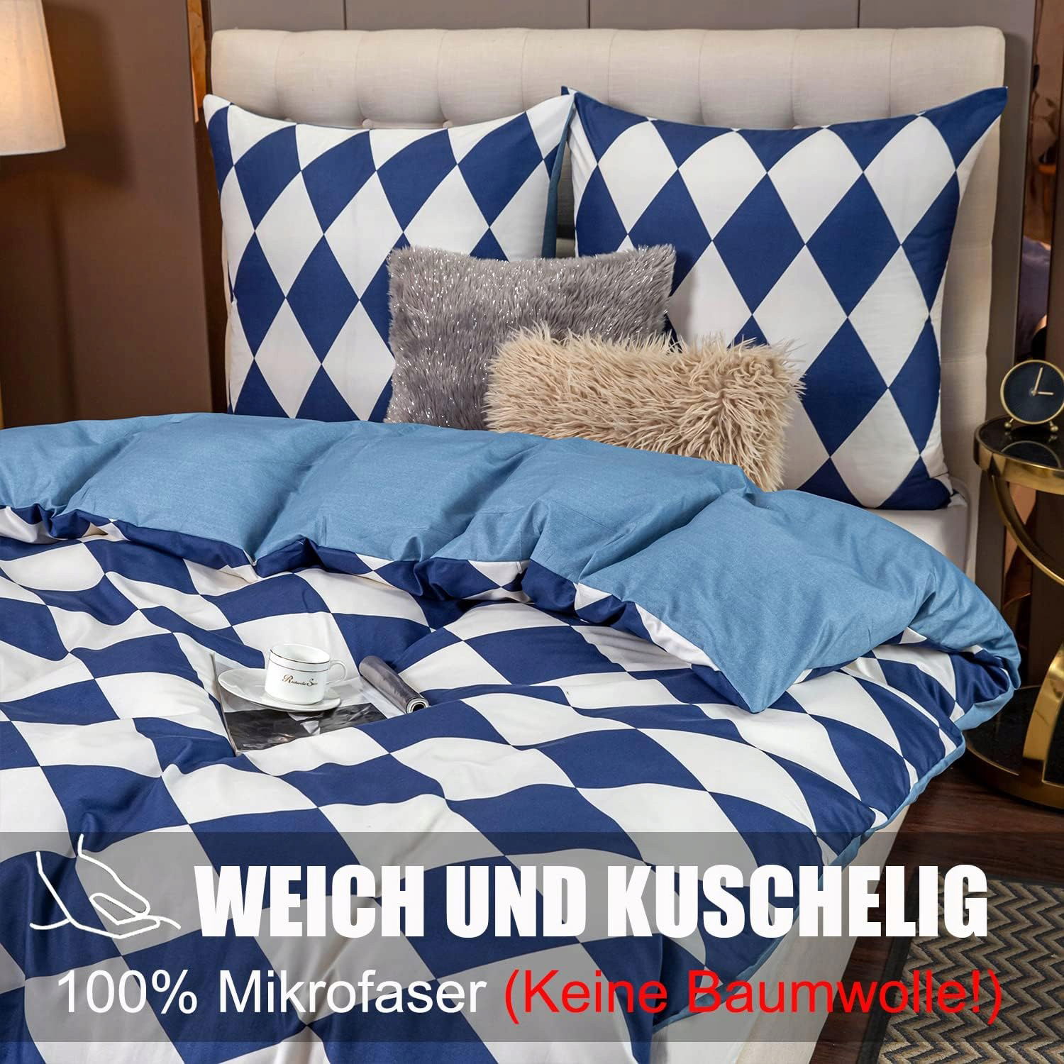 Piękne nowoczesne wzornictwo Geometryczny design z eleganckim połączeniem niebieskiego i białego daje poczucie elegancji i wyrafinowania; pozwala się zrelaksować i uspokoić.