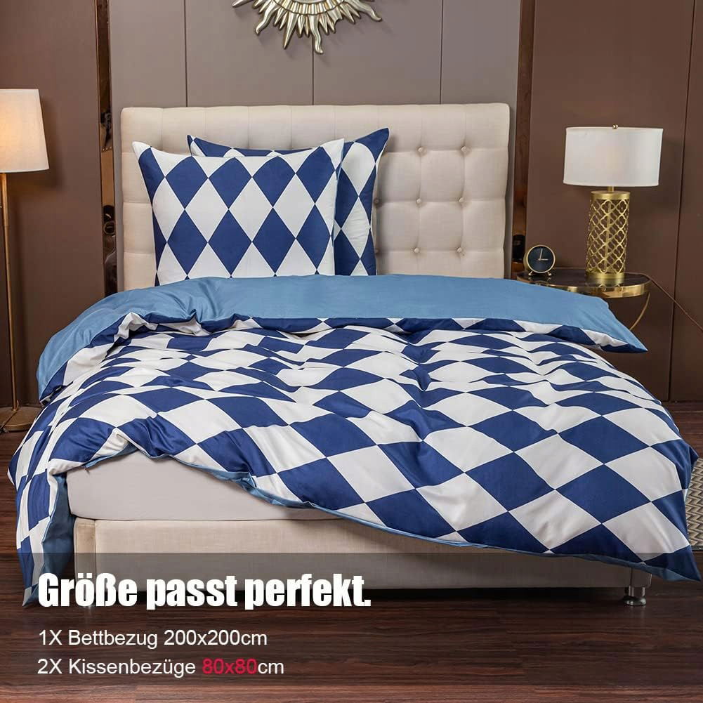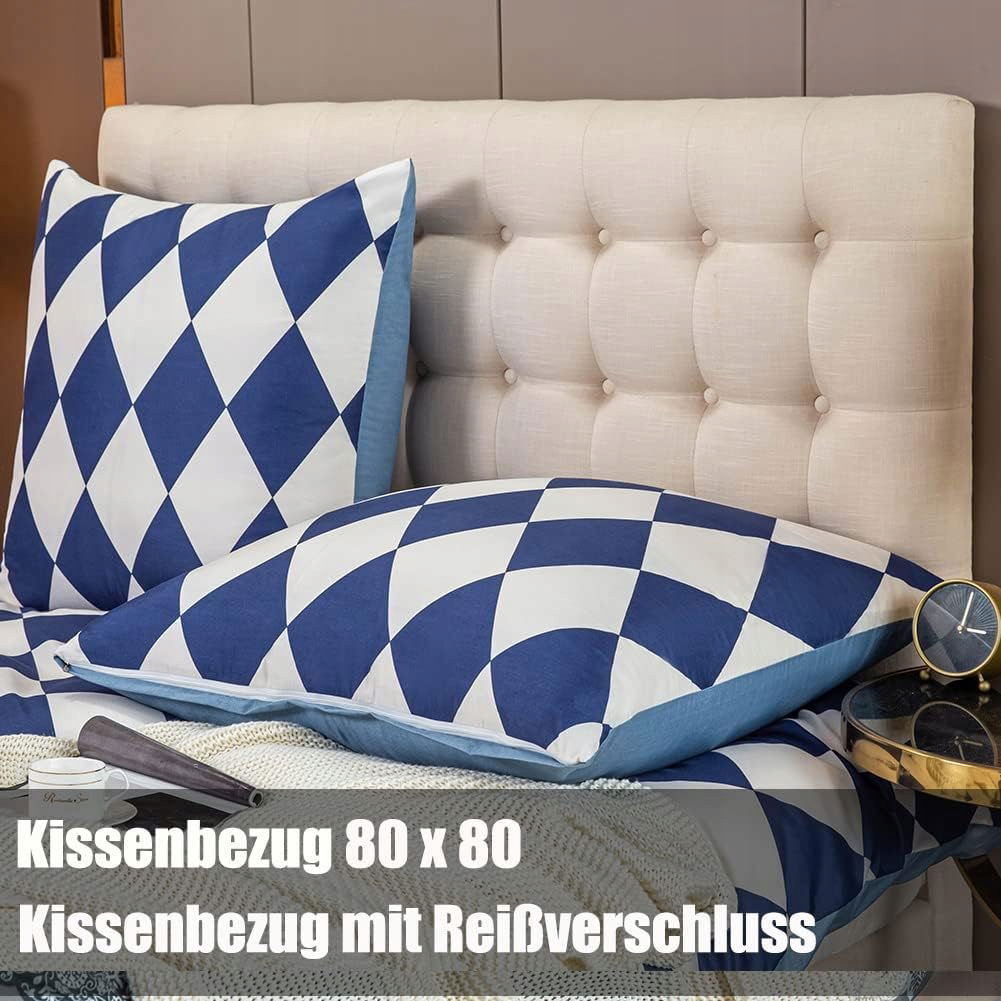 Soifox Komplet pościeli 200 x 200 cm, biało-niebieski - geometryczny wzór, zestaw pościeli z mikrofibry, poszwa na kołdrę 200 x 200 cm z poszewkami na poduszki, miękka i nie wymaga prasowania, nowoczesna poszewka na kołdrę z zamkiem błyskawicznym